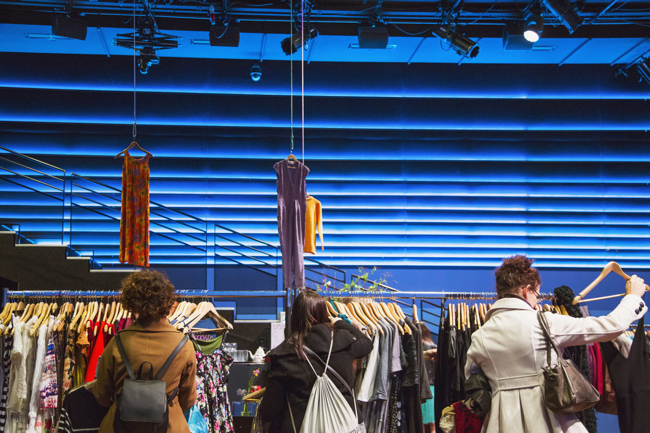Terwijl de eerste mensen alweer naar buiten lopen met hun nieuwe aanwinsten, wordt er binnen in het Erasmus Paviljoen nog flink geshopt voor tweedehands pareltjes. The Pavilion clothing swap is pas een half uur bezig maar het is al druk.