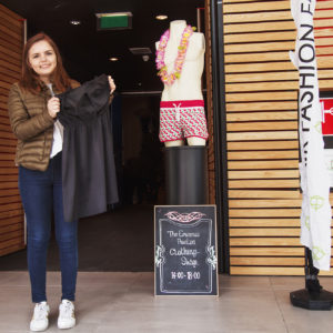 “In eerste instantie was ik een beetje bang dat er niet zo veel mensen zouden komen, maar het is al van het begin af aan druk. Zelf heb ik van alles ingeleverd; jassen, T-shirts, rokken en meer. Ik had al een tijdje wat oude kleding liggen die ik niet meer draag en vond het een interessant idee om ze te komen ruilen in plaats van weg te gooien. Ik ben het meest blij met dit zwarte jurkje dat ik heb gevonden, hij is perfect voor de zomer.”