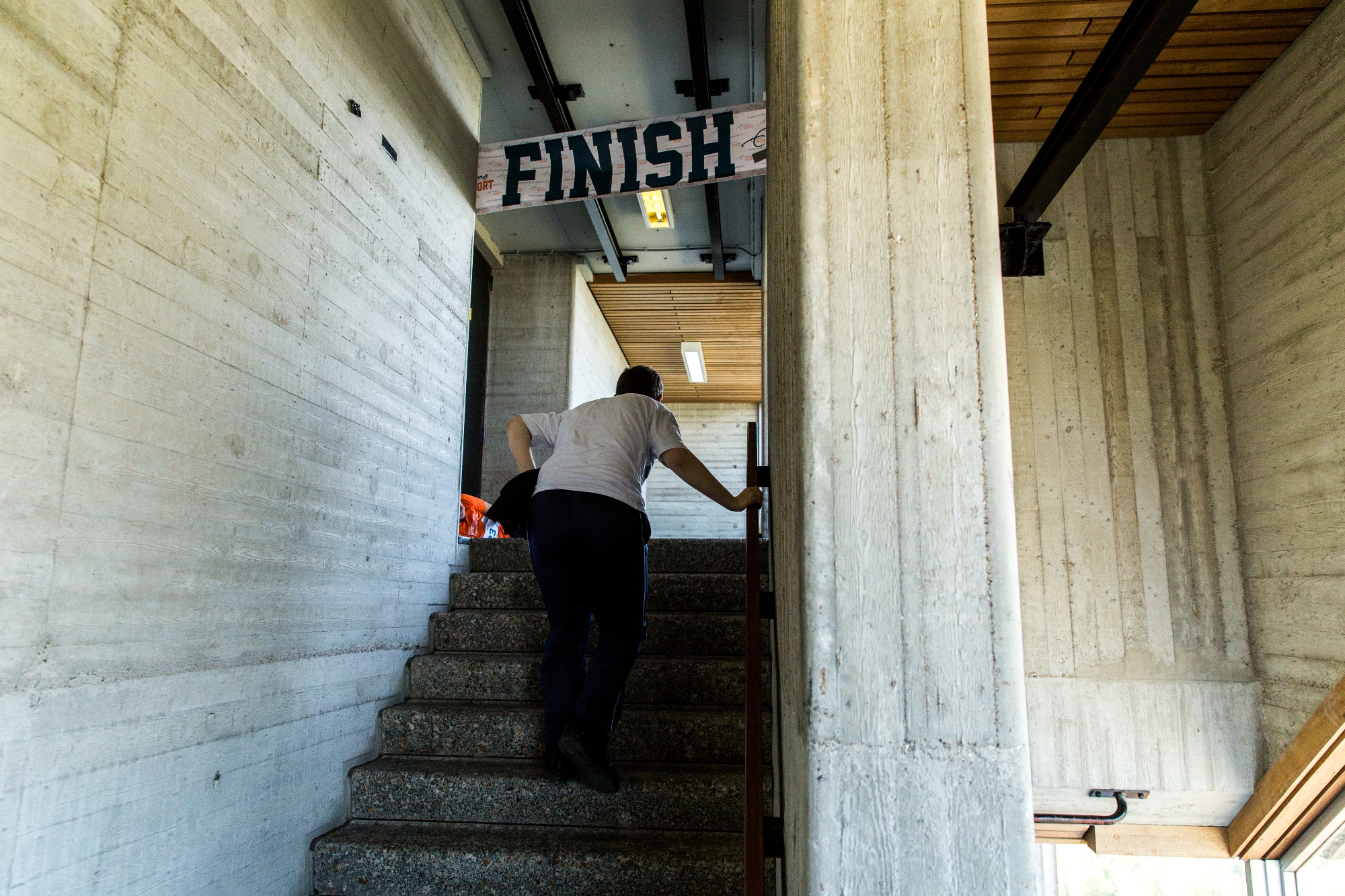 “Dit was best zwaar”, puft Ka-chun Lo, de winnaar van de race naar de achttiende verdieping. “Je krijgt steeds minder zuurstof in de benen. Zeker de laatste verdiepingen galmt je zwaarder wordende adem door de hal. Het lijken dan net stikgeluiden. Gelukkig ben ik aan deze verzuring gewend door het roeien. Na twee kilometer op de roei-ergometer duurt het altijd tien minuten voordat je weer weet waar je bent.”