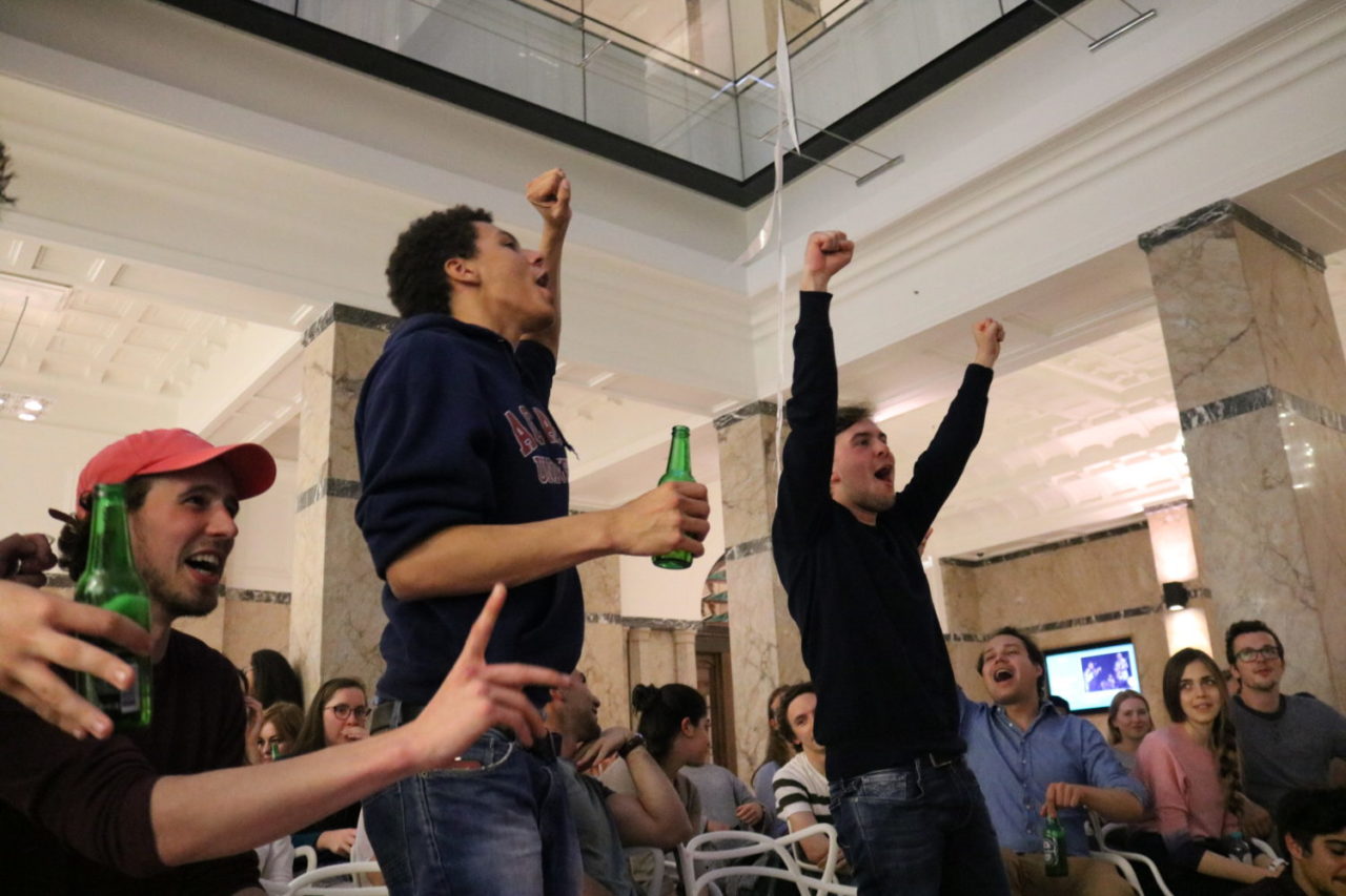 Aangezien de bieders medestudenten waren, zou je kunnen denken dat ze zuinig met hun centen omgingen. Maar na een paar kratten bier en wat flessen wijn, en onder aanvoering van twee ceremoniemeesters die een Wolf of Wall Street-achtige sfeer neerzetten, strooiden de beschonken bieders met hun geld om alles tegen hoge prijzen te kopen, zelfs een introductiecursus Vlaams.