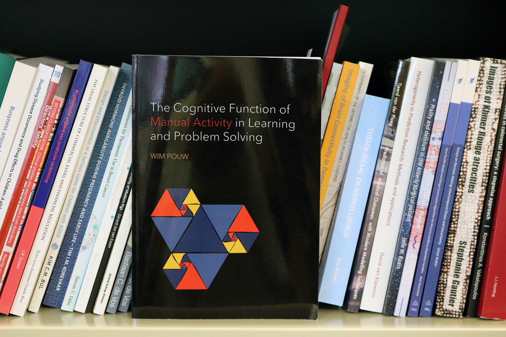 “Ik heb onderzoek gedaan naar handelend denken in leerprocessen, zoals denkprocessen terwijl je handelt, zoals bij handgebaren. Een algemeen idee over handgebaren is dat ze communicatief zijn, maar ze zijn veel meer dan dat. Een mooi exotisch voorbeeld is de abacus, een Japanse versie van een telraam. Kinderen of studenten leren daarmee complexe sommen maken. Op een gegeven moment kunnen ze die berekeningen ook zonder de abacus, maar dan maken ze nog wel de bijbehorende handgebaren. Mensen die nooit met een abacus leerden rekenen, hebben veel meer moeite met de sommen. Waarschijnlijk hebben zij een talige strategie.”
