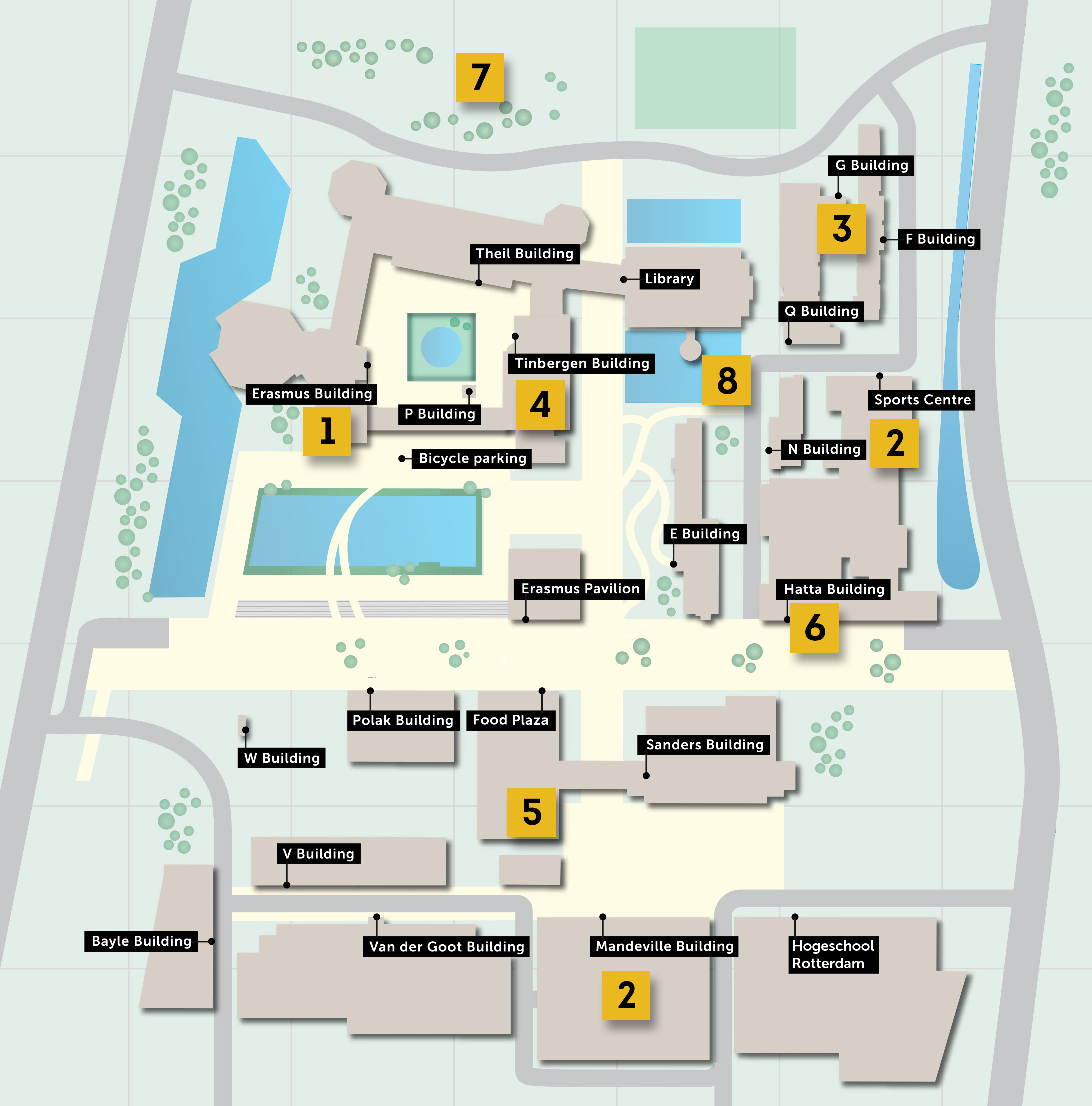 - Zoek de verscholen kantines Typisch iets waar de gemiddelde Rotterdamse student te laat achter komt: de campus telt meerdere kantines, die vaak goedkoper zijn dan het foodcourt. In Tinbergen huist de Etude en in Mandeville op de vierde verdieping The Company, beide goede, goedkope kantines. Ook goed om te weten: lunches, snacks en diners zijn goedkoop én lekker in de kantine van het sportcentrum. Niet-sporters zijn daar net zo welkom.