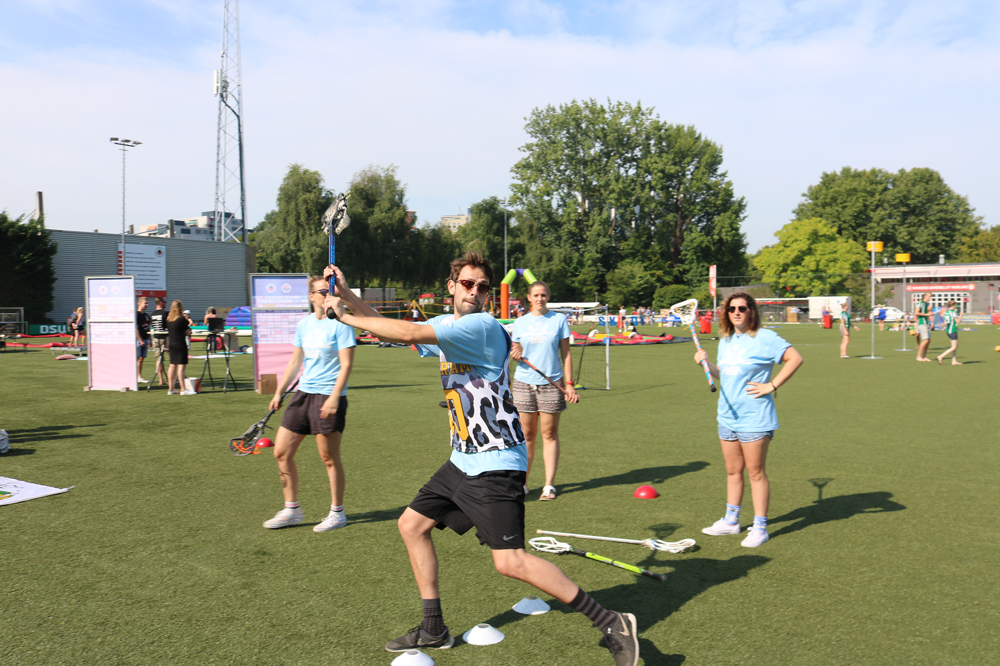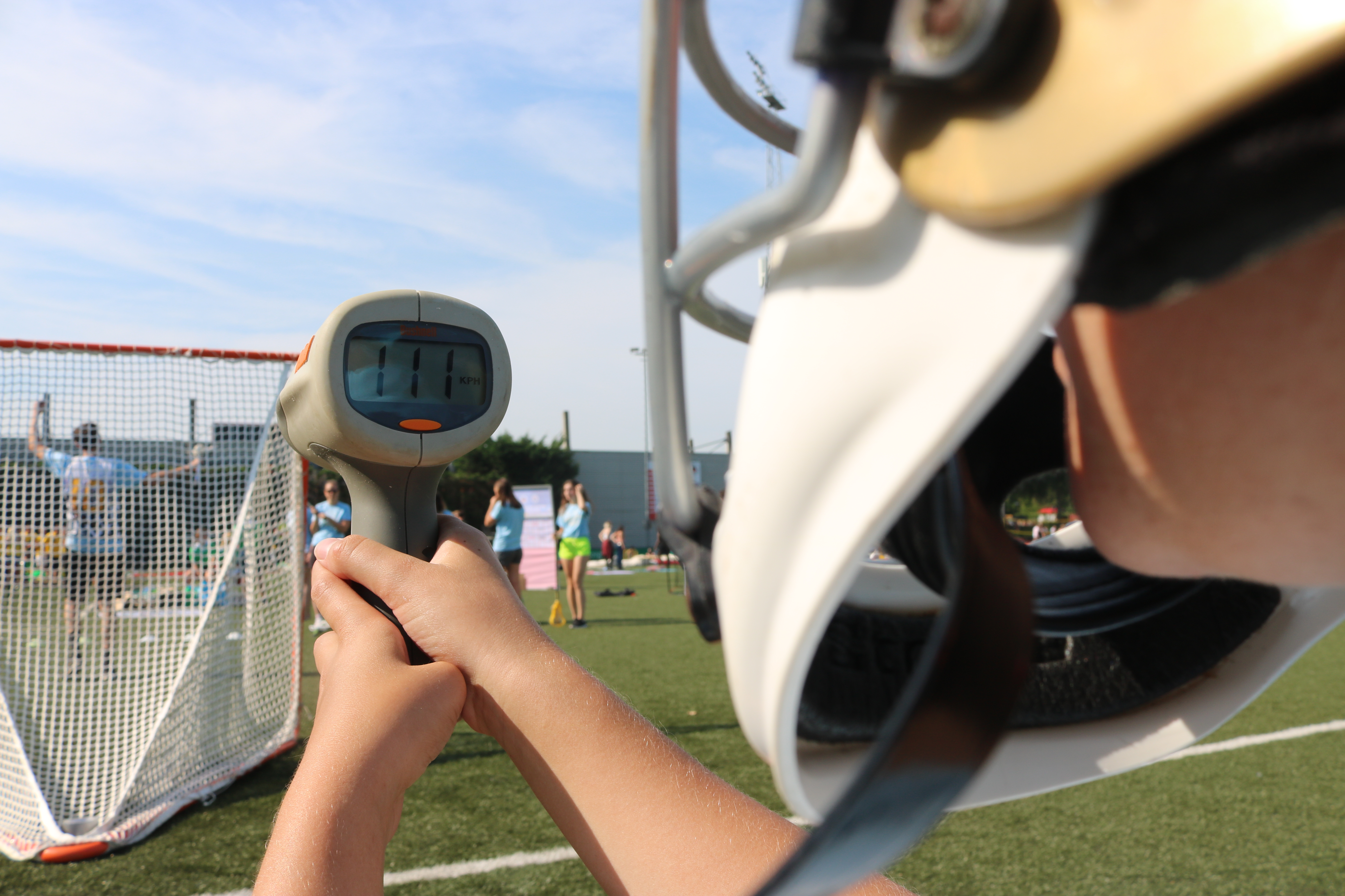 En bij de Lacrosse-spelers van Jaguar kon je niet op de bon geslingerd worden, maar er was wel een lasergun. Deze jongen wist het balletje met 111 kilometer per uur het net in te slingeren.
