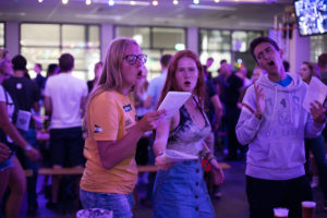 Ondertussen voorzien de begeleiders continu alle tafels van nieuwe bierkannen. Studenten turen naar de liedboekjes om in het halfdonker toch de teksten te kunnen lezen. Als de band de monsterhit “Piano Man” van Billy Joël inzet, verbroedert en verzustert de gehele zaal en staan studenten van verschillende tafels schouder aan schouder voor het podium.