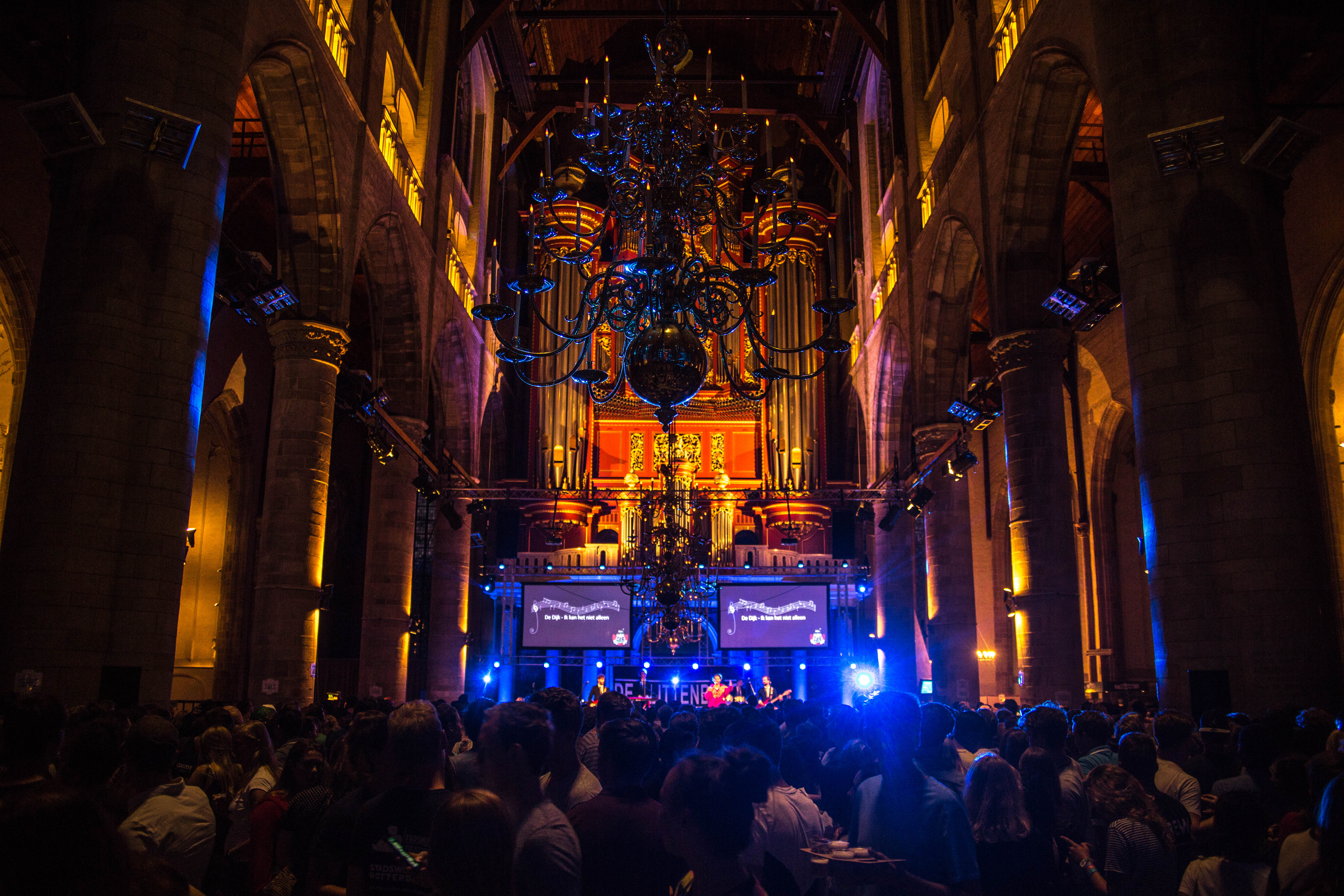 De Laurenskerk loopt langzaam vol met aankomende eerstejaars en hun gidsen voor aanvang van The Night of the Songs. Net als vorig jaar dient de middeleeuwse Laurenskerk in het centrum van Rotterdam als het decor voor het hoogtepunt van de week.