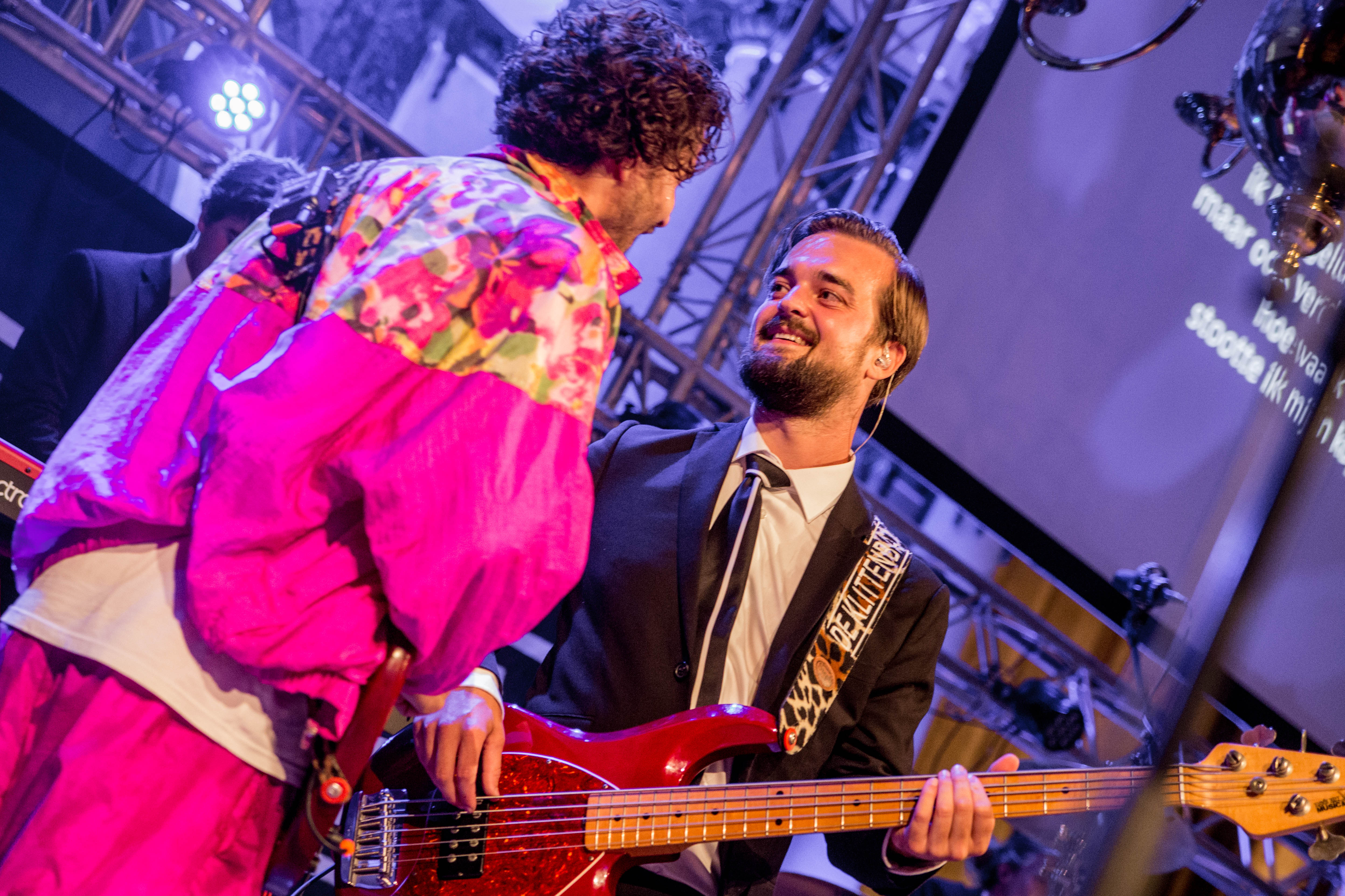 De Delftse studenten coverband De Klittenband geeft de hele avond lang een spetterende show weg. Gitarist Jeroen Swart en bassist Freek Akkerman hebben het duidelijk naar hun zin tijdens hun versie van de klassieker ‘Bloed, Zweet & Tranen’ van André Hazes.