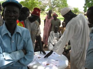 Een focusgroep in Akot, Zuid-Soedan. Abelnour: "Ik heb vrijwel uitsluitend met lokale mensen en organisaties gewerkt." (foto: Samer Abdelnour)