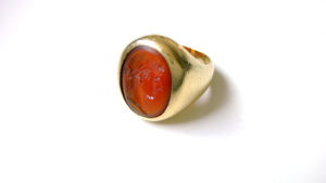 Familiemotto “Dit is een ring met geschiedenis: de carneool kreeg mijn overgrootmoeder van een bewonderaar. Hij was archeoloog en vond deze Romeinse steen in Aken. Mijn overgrootmoeder liet er een ring van maken en gaf die aan mijn oma toen ze achttien werd. Het familiemotto staat erin: “Liefde en wilskracht”. Mijn oma gaf me de ring toen ik achttien werd, als een herinnering aan onze waarden: familie, doorzettingsvermogen, liefde en onze gedeelde passie voor klassieke geschiedenis.”