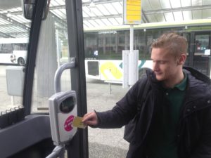 In de bomvolle bus vertelt Thijs waarom hij vorig jaar na twaalf weken stopte met zijn studie Bedrijfskunde. “Het paste totaal niet bij mij. Er was één vak wat ik interessant vond: Gedrag en organisatie, omdat het over mensen ging. Toen wist ik dat ik Psychologie moest gaan doen.” Inmiddels heeft hij er vier weken studie opzitten. “Dit voelt een stuk beter.”