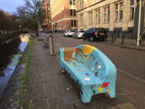 Op woensdagochtend onthult Hutter een social sofa op campus Woudestein. De ‘sofa’ is een cadeau van het ISS aan de EUR en komt in Park Noord te staan. De betonnen bank is versierd met de skylines van Den Haag en Rotterdam in mozaïek. Er staat ook een exemplaar aan de Kortenaerkade in Den Haag, voor de ingang van het ISS.