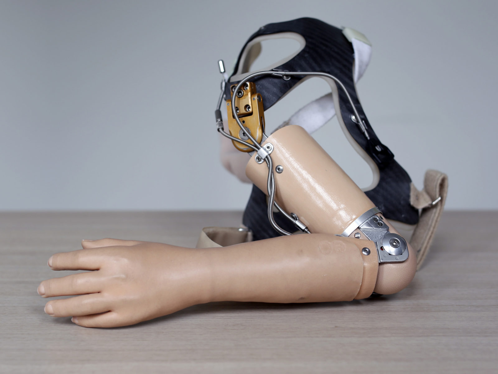 Lichaamsbekrachtigde protheses kun je bewegen via spierkracht in je eigen lichaam. Van Heijningen: “Deze protheses zitten stevig vast aan het lichaam, vaak met een soort korset, zodat je hem met de spierkracht van je gezonde arm of een ander lichaamsdeel aan de andere kant, in beweging kunt brengen.”