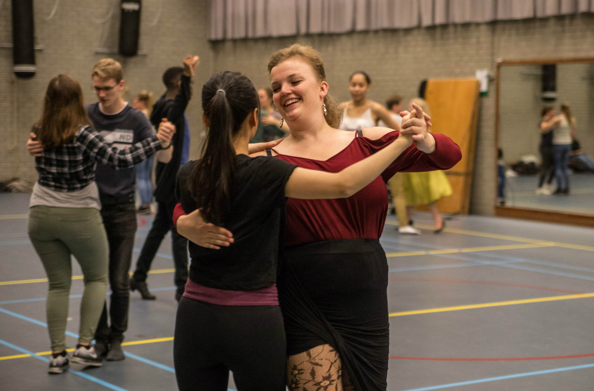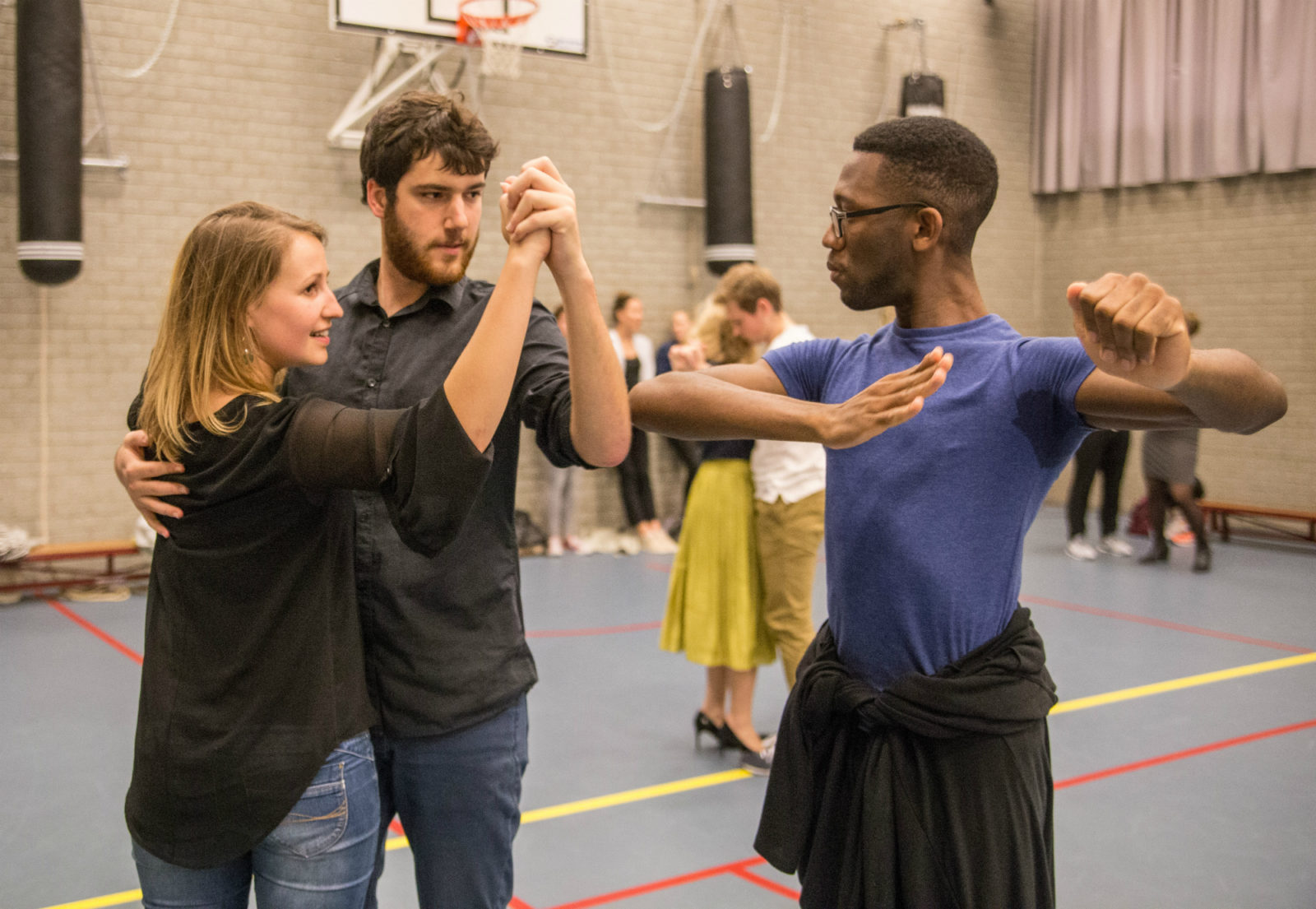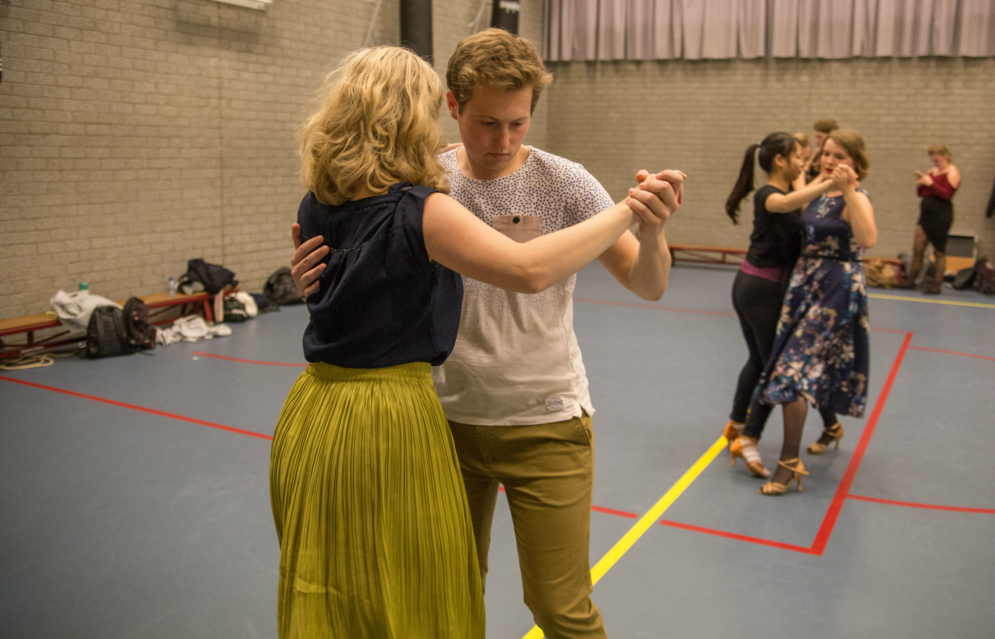 ‘Slow, slow, quick, quick, slow’, klinkt het herhaaldelijk. Dansdocenten Ramsley Alexander en Renate Moesker dirigeren hun leerlingen door een zaal in het Erasmus Sportgebouw. De groep is al zes weken bezig met het ‘bronzen’ beginnersniveau van ballroomdansen, dat bestaat uit ‘standaarddansen’, zoals de wals, en Latin varianten, zoals de chachacha.