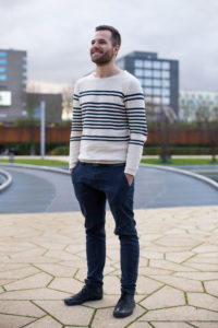 Stijl. “Ik wil een beetje anders zijn en nieuwe dingen proberen. Soms draag ik een gescheurde spijkerbroek en sjofele schoenen. Op andere dagen, zoals vandaag, zie ik er wat gelikter uit. Als het even kan, draag ik geen pak, want dat vind ik niet nodig. Ja, misschien straal je meer klasse en belangrijkheid uit, maar uiteindelijk is het toch gewoon een kledingstuk. Overhemd, stropdas en leren schoenen zijn niets voor mij. Ik kleed me graag in een wat rauwere stijl en ik vind het leuk om daarmee te experimenteren. Het is een van de manieren om mezelf uit te drukken. Al deze kleren heb ik in verschillende landen gekocht: de schoenen komen uit Hongkong, de broek uit Kuala Lumpur, de riem uit Sydney en het jasje uit Zweden.”