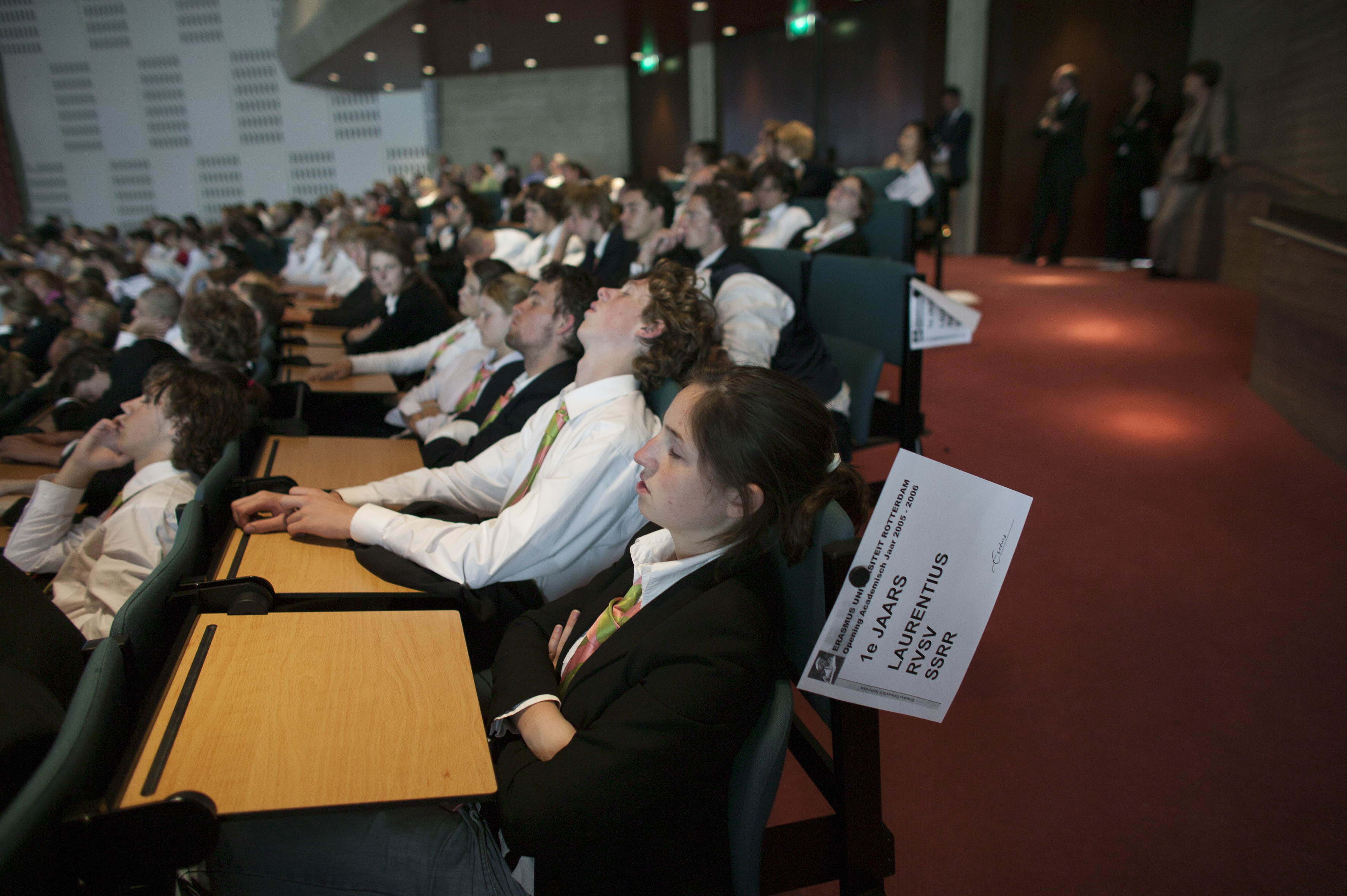 Zoals te doen gebruikelijk is het bij de Opening van het Academisch jaar halen de feuten van de studentenverenigingen hun slaap in na de ontgroening. (EM 3, september 2005). (LW)