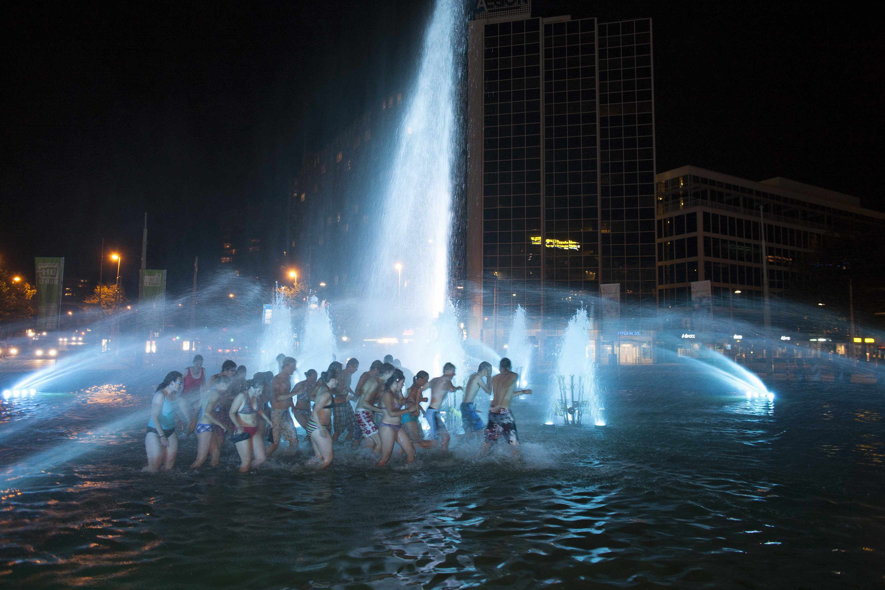 Studenten van het Rotterdamse dispuut Ichtus van CSFR worden ‘gedoopt’ in de Hofpleinvijver als belangrijkste ontgroeningsritueel van de vereniging (EM 5, oktober 2009) (LW)