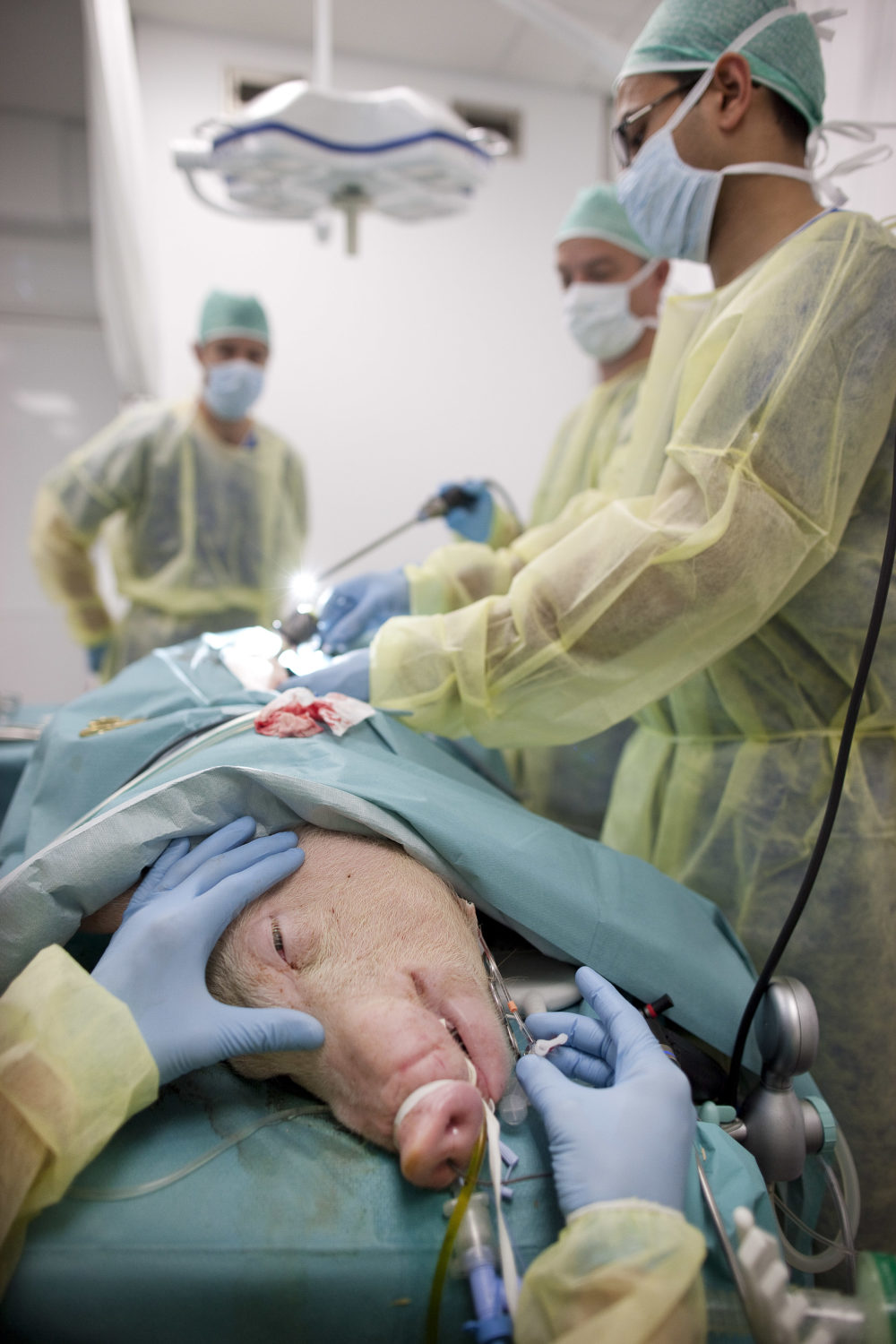 Varken op de operatietafel van het Erasmus MC, bij een verhaal over dierproeven (EM 8, 2 december 2010). (LW)