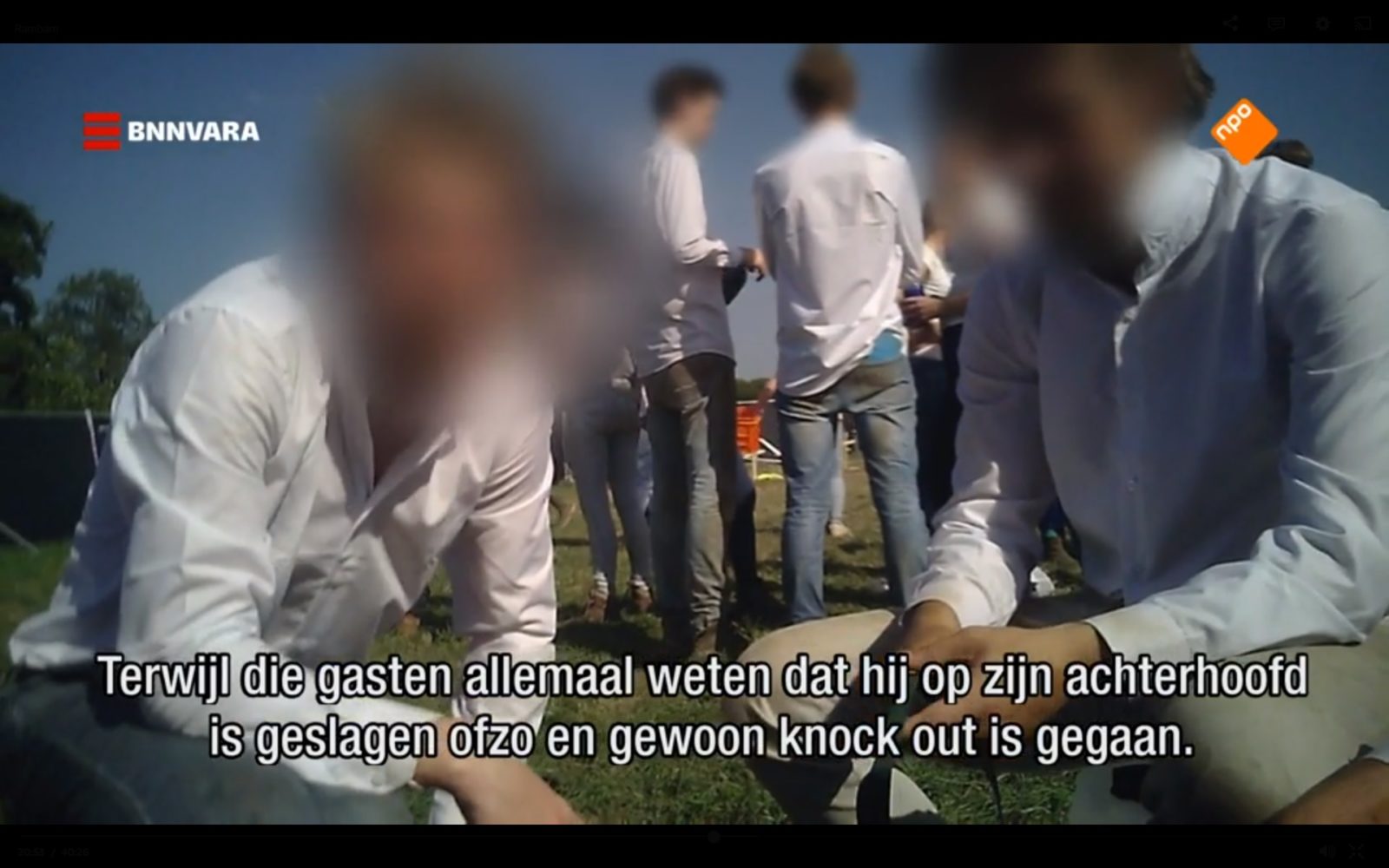De nep-feut vertelde in de uitzending over het inmiddels beruchte doucheritueel waarbij de aspirant-leden elkaars anus moesten controleren op de aanwezigheid van teken en ‘schoenen die op hoofden werden gezet’. Het opvallendste verhaal van Jos ging over de klap die een van de deelnemers zou hebben gekregen. Door de klap zou de ‘feut’ tegen een paaltje zijn gevallen en een hoofdwond of zelfs een hersenschudding hebben opgelopen.