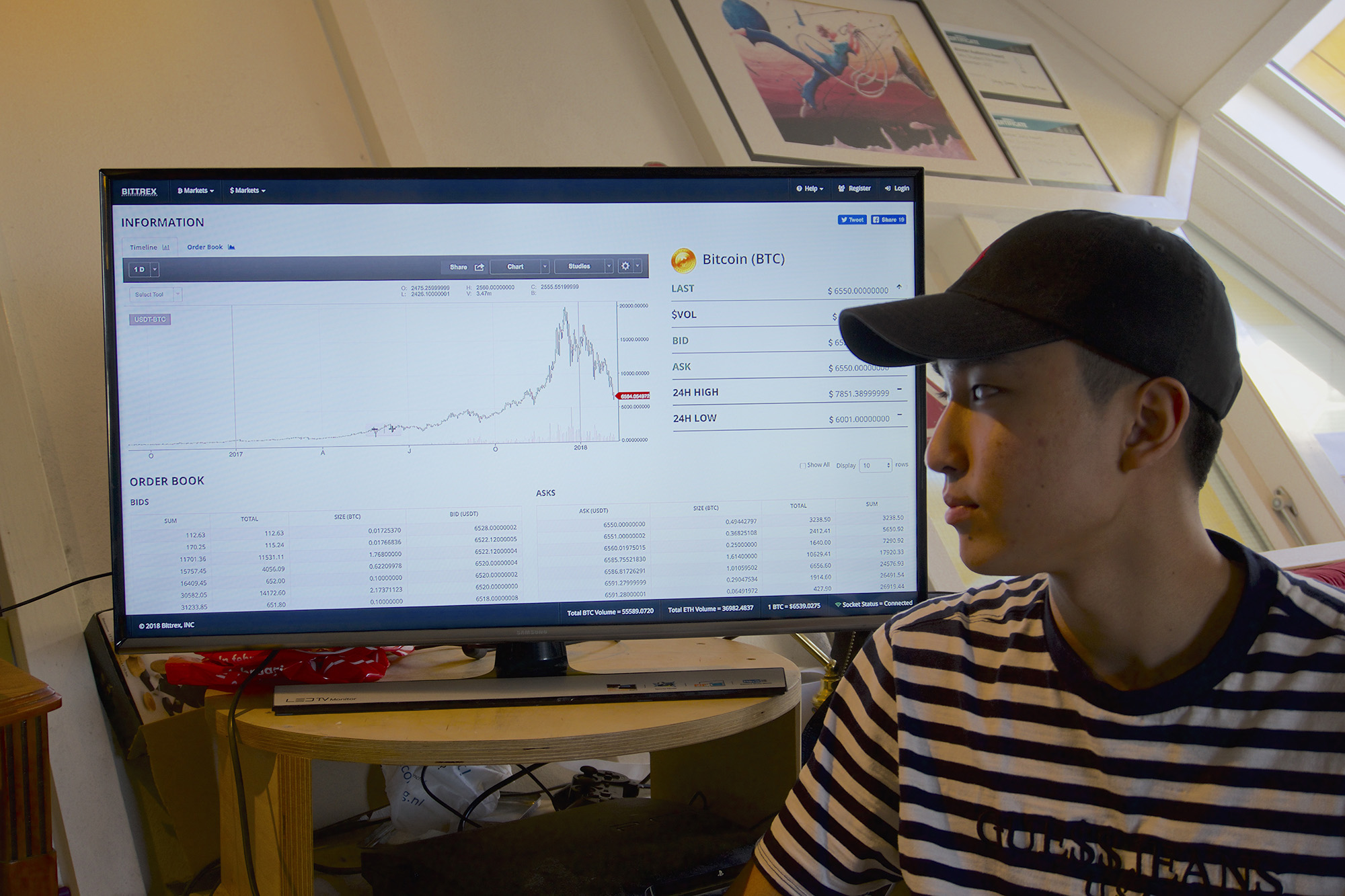“In het begin handelde ik iedere beursdag heel fanatiek in allerhande verschillende valuta, maar dat werkte niet,” geeft Li toe. “Ik had best wel wat geld verloren, dus toen heb ik de tijd genomen om goed te kijken hoe anderen handelen en te leren hoe ik valuta met een maximale winst kan verkopen. Verrassend genoeg werd Twitter mijn belangrijkste bron van informatie. Ik leerde de basisprincipes van marktcycli—kopen wanneer de valuta laag staat en verkopen wanneer de waarde hoog is. Tussen juli en december was de markt zwak, maar ik wist dat de markt weer aan moest gaan trekken, dus toen ben ik me gaan richten op het kopen van andere cryptovaluta dan bitcoins. En dat pakte goed uit.”