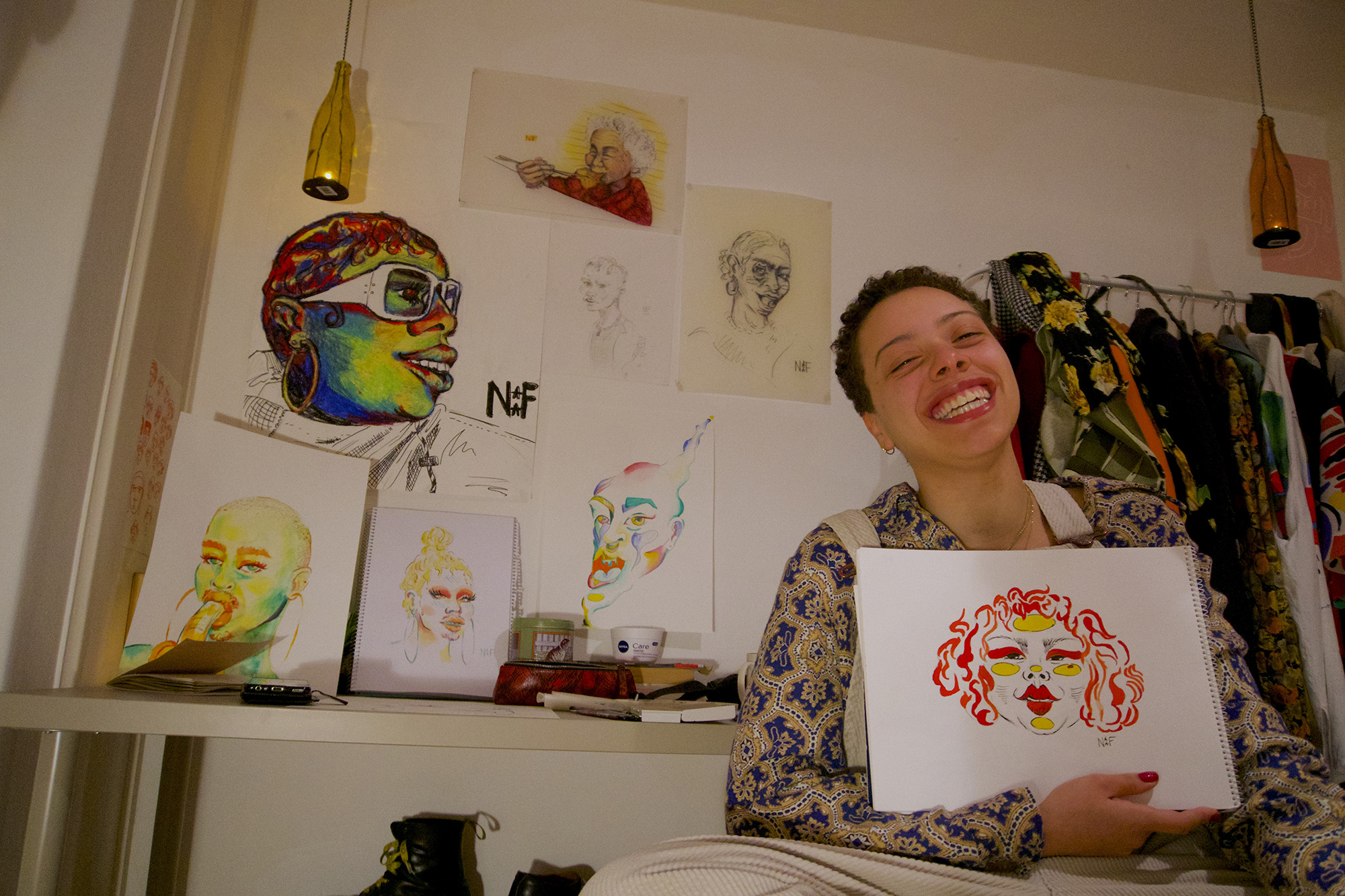 Nychenda Fecunda heeft iets met het tekenen van gezichten. Haar slaapkamer hangt vol met overvloedige portretten die het midden houden tussen betoverend en verontrustend, speels en griezelig. Ieder gezicht is nauwkeurig bewerkt en ziet eruit alsof het in een poel van vreemde dromen is ondergedompeld om er vervolgens onnatuurlijk gekleurd en met vreemde eigenschappen uit tevoorschijn te komen, zoals smeltend ijs in plaats van haar. Voor Fecunda is tekenen een vorm van meditatie, maar sinds kort verdient ze ook iets bij met de kunst die ze op Instagram post.