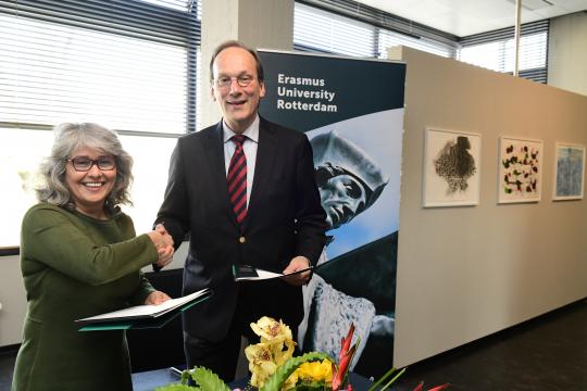 Daarnaast zorgt de universiteit jaarlijks voor twee werkervaringsplekken die open staan voor vluchtelingstudenten. “Dat is heel belangrijk, omdat zij hun kansen op de arbeidsmarkt daarmee vergroten”, zegt Jasper Vink van het UAF. “Het einddoel is dat elke vluchteling een diploma op zijn of haar niveau haalt en ook aan de slag kan, zodat hij of zij economisch onafhankelijk wordt.” De EUR is niet de enige onderwijsinstelling in Nederland die een dergelijke afspraak met het UAF heeft, maar de overeenkomst die er nu ligt is volgens Vink wel heel uitgebreid. “Niet veel onderwijsinstellingen creëren ook kansen voor vluchtelingen als werkgever.”