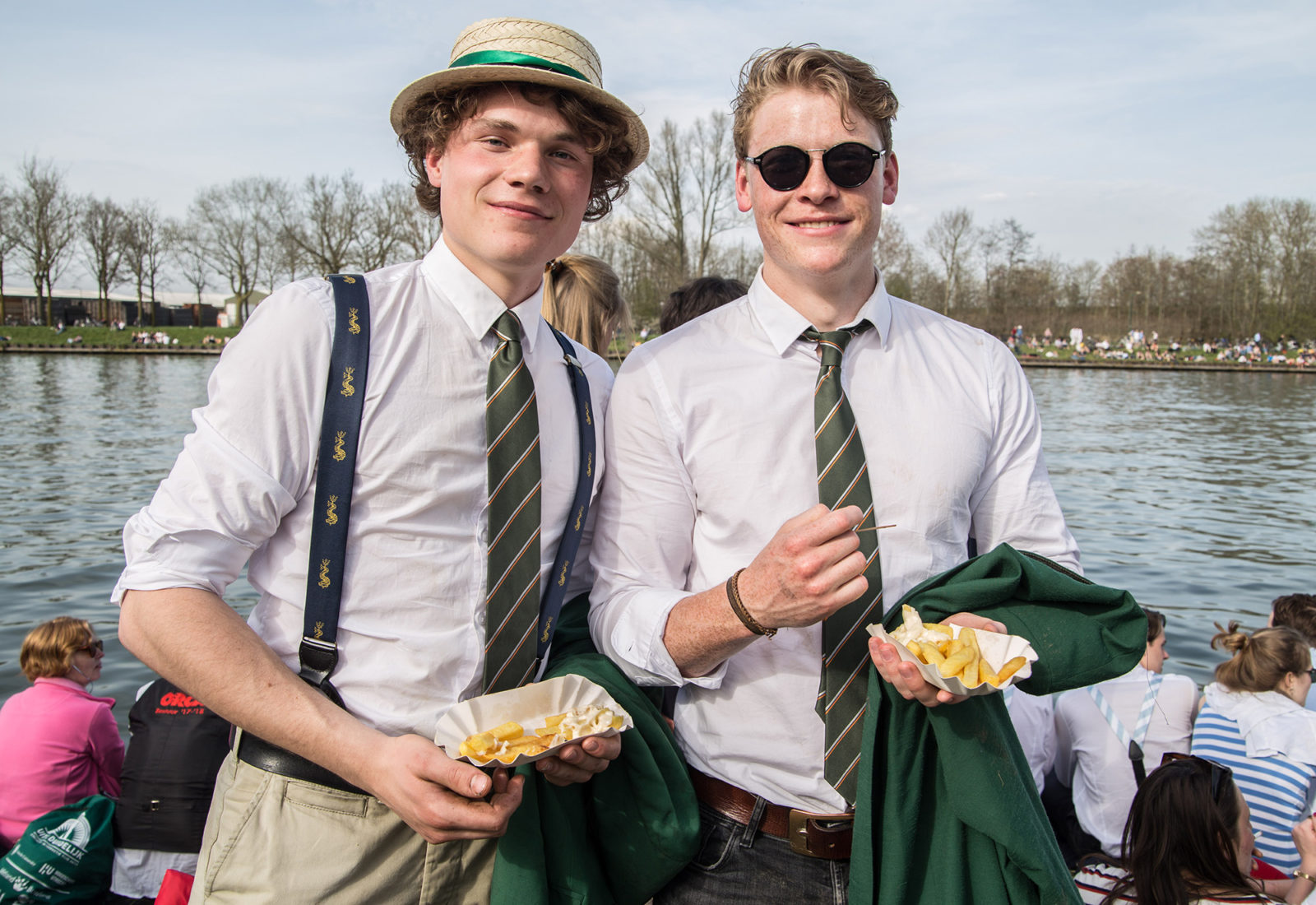 Helaas geen overwinning voor Skadi. De jongens uit Rotterdam eindigen zevende van de zeven verenigingen in de finale van de Oude Vier. Geen fantastische prestatie, maar ook geen verrassing. Terwijl de leden van Nereus naakt het kanaal inspringen om de overwinning te vieren, een traditie tijdens de Varsity, blijven een paar jongens van Skadi bij het kanaal staan, nonchalant nippend aan hun biertjes.