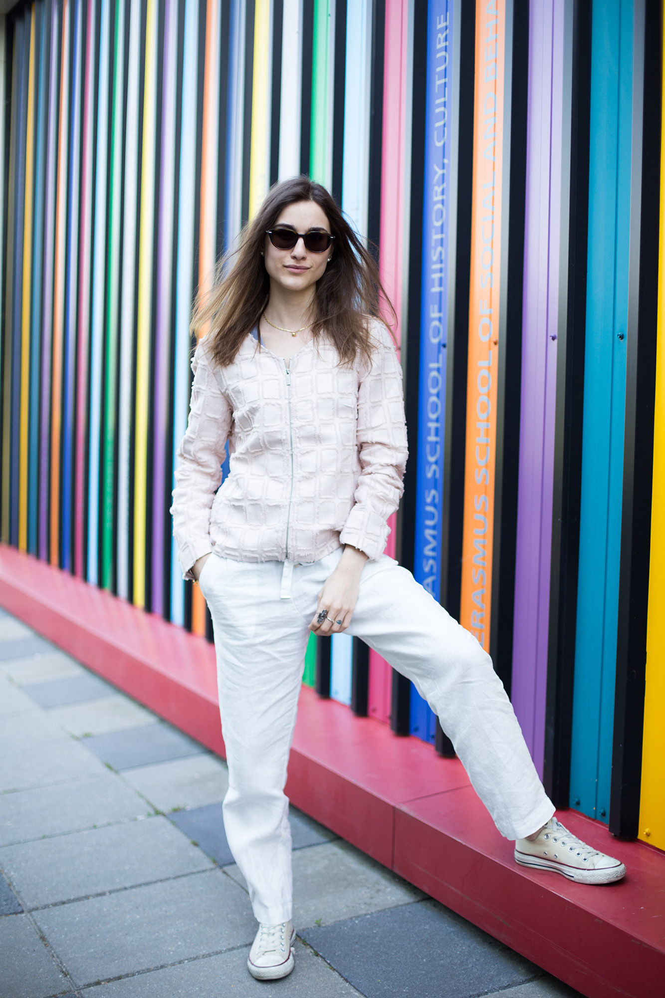 Onderzoek “Ik ontdekte mijn interesse in het economische aspect van de kunstmarkt tijdens mijn bachelor, dus heb ik ervoor gekozen mijn scriptie daarover te schrijven. Mijn onderzoek gaat over modeontwerpers in Amsterdam. Haute couture is in Nederland niet echt groot, en de modewereld is hier erg besloten. Daarom is het voor beginnende ontwerpers moeilijk deze industrie binnen te komen. Mijn docent en ik vroegen ons af hoe jonge professionals zich staande houden, en het leek me interessant om dit probleem te onderzoeken. We hebben ontdekt dat bedrijven niet echt staan te springen om modeprojecten te financieren. Om een beurs van de overheid te krijgen, moet je een uitzonderlijk creatief concept hebben, terwijl er niet wordt gekeken naar de commerciële haalbaarheid van het project.”