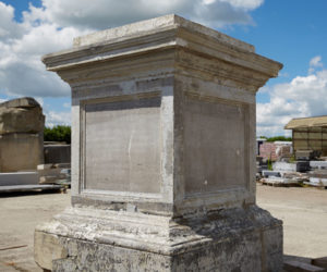 Dat ‘in de voetsporen van Erasmus treden’ kun je vrij letterlijk nemen, want de gebruikte sokkel diende van 1677 tot 1963 als voet van het Erasmusbeeld bij de Laurenskerk in Rotterdam. Daarmee is het een van de twee oudste sokkels van Nederland, en eentje die driehonderd jaar geschiedenis van de stad in zich meedraagt. “Er zitten scheuren in die vermoedelijk veroorzaakt zijn door het bombardement op Rotterdam”, zegt Van Beek. Dit historische object is bovendien een van de belangrijkste oorzaken dat de plaatsing van Der Stein vijf jaar langer op zich liet wachten dan gepland.