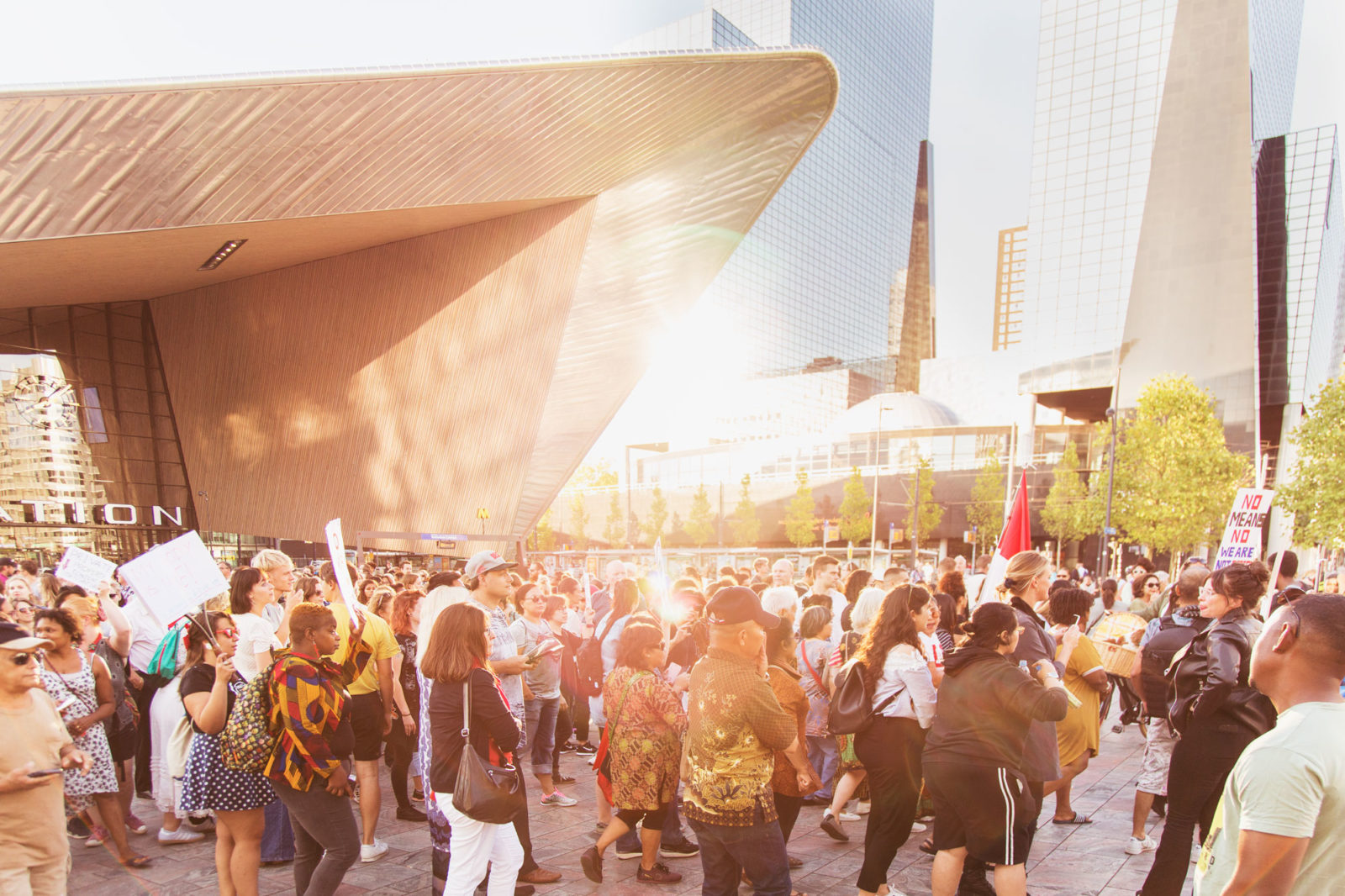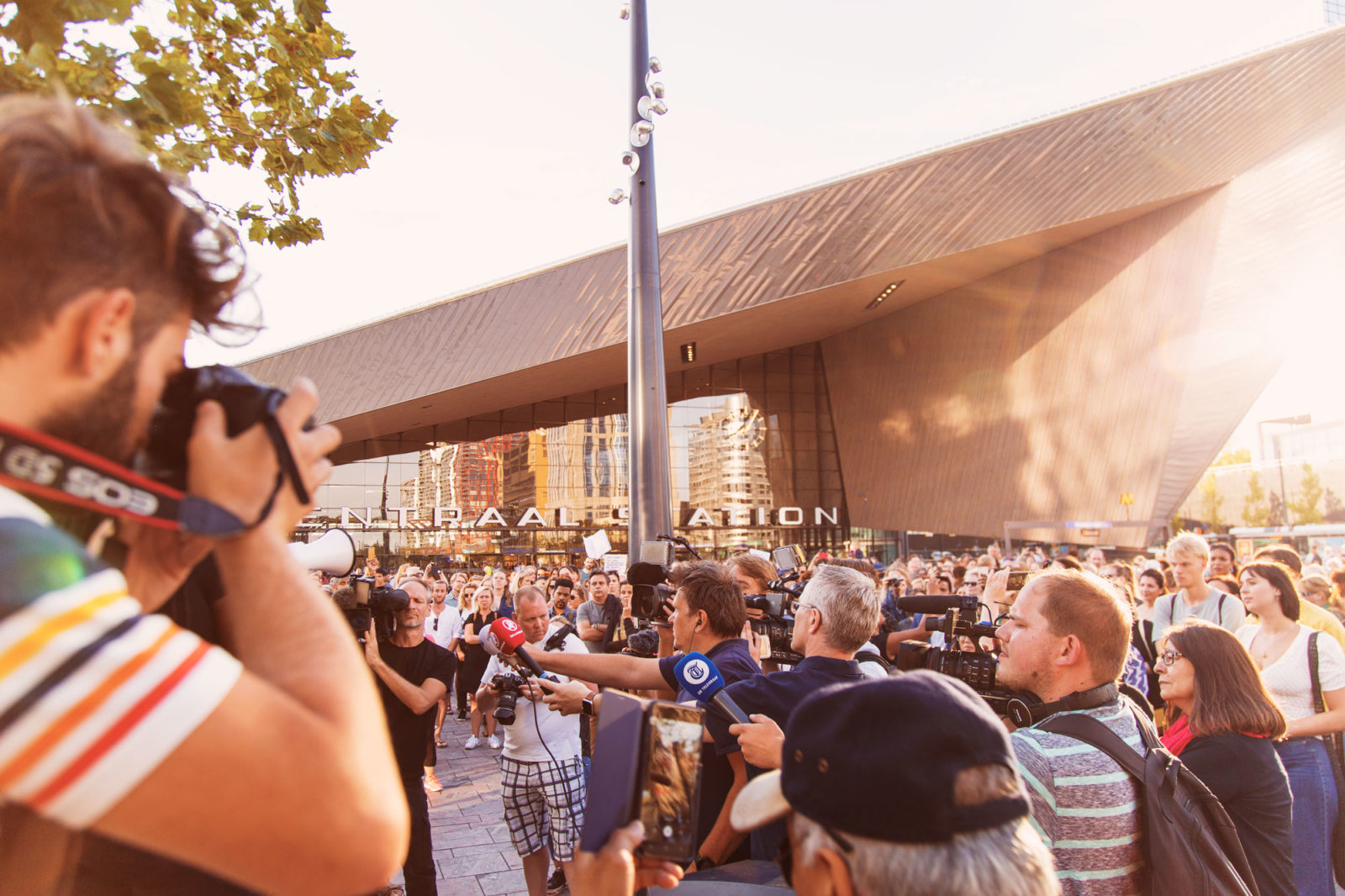 Jeroen van der Meer is met vrienden aan het ontspannen in de Grotemarkt naast de Markthal wanneer de stoet langsloopt. “Heel mooi om te zien”, zegt Van der Meer. “Mensen van alle leeftijden en verschillende achtergronden lopen samen voor een missie.”