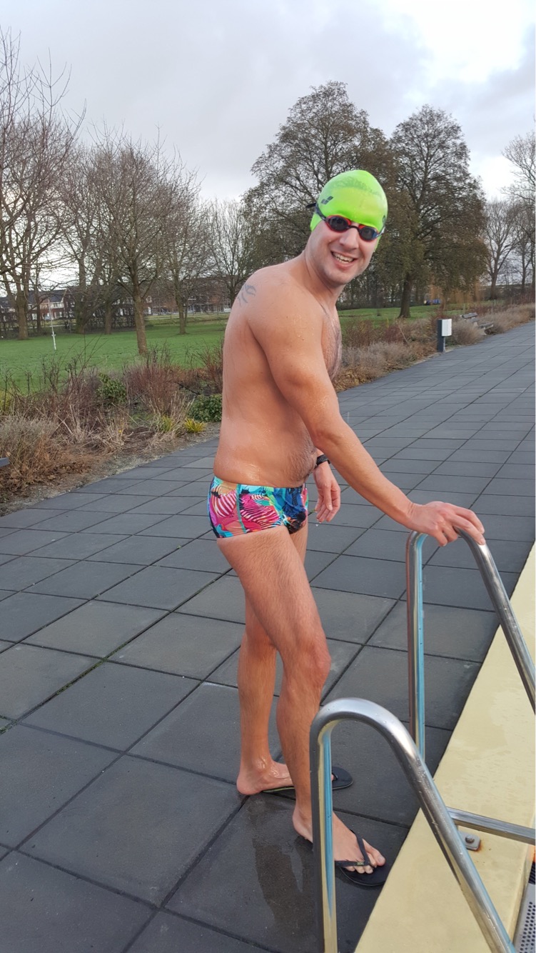Die kwam er in de vorm van Marcel van der Togt, vooral bekend als trainer van Maarten van der Weijden. “Hij geeft me wekelijks mijn trainingsschema’s. Met mijn techniekzat het wel goed, maar ik moest een betere conditie krijgen, meer gewicht, en beter met kou om leren omgaan.” Het gewichtsprobleem was tamelijk eenvoudig op te lossen: meer eten en wekelijks een paar keer naar de sportschool. Om de kou de baas te worden, adviseerde Van der Togt Vaccaro om het zogeheten ice swimming op te pakken, zwemmen in water van maximaal 5 graden Celsius. “Sinds september vorig jaar zwem ik zodoende elke zaterdag in een onverwarmd bad, dat vanzelfsprekend elke week wat kouder werd. Uiteindelijk resulteerde dat in mijn deelname aan de Open Nederlandse Kampioenschappen in januari. Eén kilometer in water van 3,2 graden zonder wetsuit.” Hij werd derde.