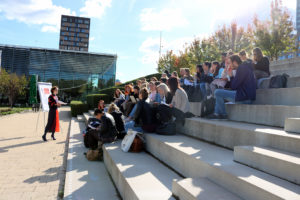 In het kader van de landelijke actieweek #WoinActie geven verschillende Rotterdamse academici deze week college in de buitenlucht. Ze willen daarmee aandacht vragen voor de bezuinigingen en de werkdruk binnen universiteiten. Alessandra Arcuri (hoofddocent International Economic Law) is de drijvende kracht achter de acties aan Erasmus Universiteit.