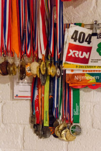 Is al die drukte geen recept voor een burn-out? Daar lijkt Hannah niet erg bang voor. “Het is een onderwerp waar steeds meer over gesproken wordt in de opleiding. Onder geneeskundestudenten is het percentage met een burn-out erg hoog.” De nieuwe lichting artsen moet dat bespaard blijven. “Voor de zomer ben ik gestopt met turnen, na twaalf jaar. Ik wist wel dat ik niet alles meer kon doen.” Ondertussen kijkt ze wel even om naar de muur waar heel wat medailles bungelen. De meeste zijn van het turnen, de rest is van het hardlopen. “Maar dat zijn van die medailles van ‘jeej, je hebt meegedaan’ hoor.” Die van de Bruggenloop is misschien wel een speciale, want langs de Maas rennen, is een van Hannahs favoriete routes. “Uitkijkend over de bruggen, dan voel je echt dat je in de grote stad woont. Rotterdam is een plek waar ambities en dromen waar kunnen worden, zo voelt het als je daar rent.”