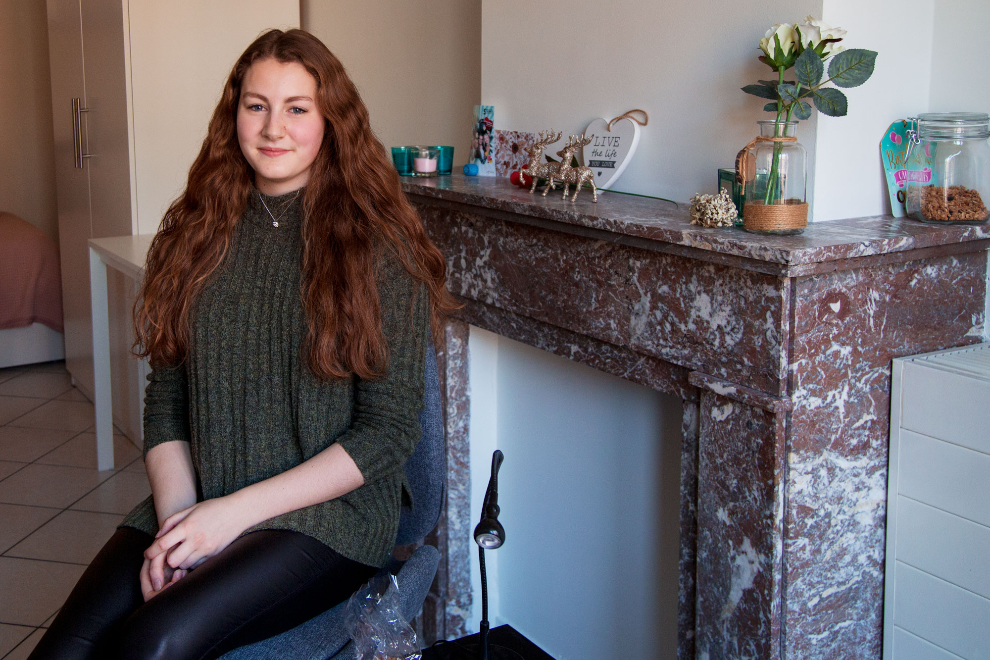 Op het bureau van haar keurige kamer in het Oude Noorden heeft Tirza (18) een kaart staan. ‘Bless this mess’ staat erop. “Ik heb natuurlijk opgeruimd voor vandaag”, vertelt ze eerlijk. “Al is het hier nooit echt een bende. Hoe lang mijn nieuwe kamerplant het gaat overleven, is nog maar de vraag. Die staat hier nu pas een paar dagen.”