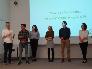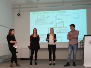 Kort en bondig verwelkomt Marie van der Gaag van Academische Zaken de aanwezigen in de zaal. Naast de deelnemers van het honoursprogramma zitten er het programmateam en een jury, bestaande uit vertegenwoordigers van onderzoeksinstituut Risbo en het AA van Beek Fonds. Elke groep krijgt vervolgens tien minuten de tijd om hun plannen te presenteren.