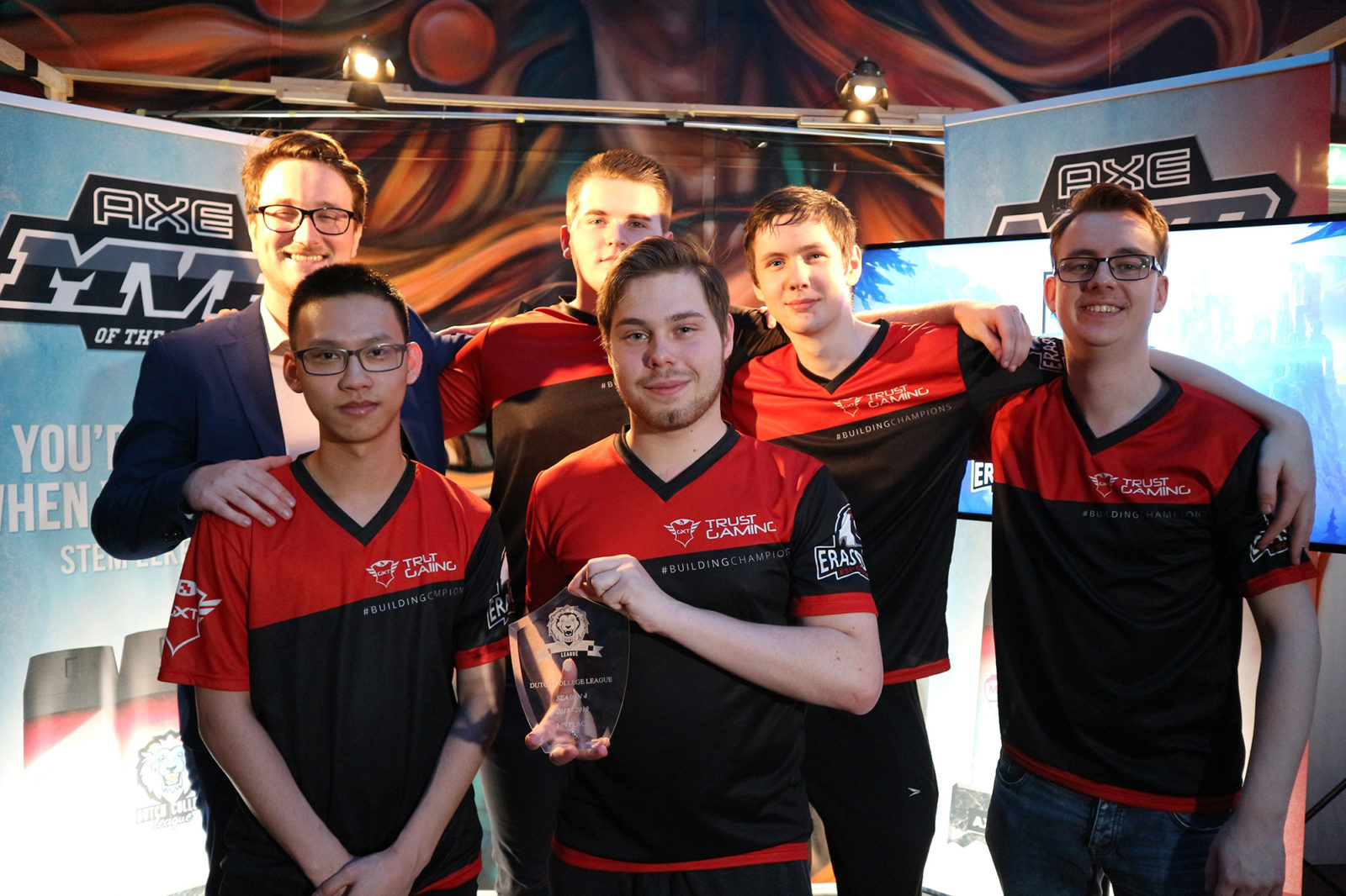 De spelers Maikel Chen, Simon Berkulo, Jan-Willem van Wingerden, Vincent Rietberg en Mitchell Bleeker en hun teammanager Jan Smeets vertegenwoordigden de e-sportvereniging van de Erasmus Universiteit dit jaar in de Dutch College League. Het team eiste de overwinning op in de finale en won zo niet alleen zijn tweede titel op rij, maar ook een reis naar Zuid-Korea, waar het de strijd gaat aanbinden met andere League of Legends-teams uit de hele wereld.