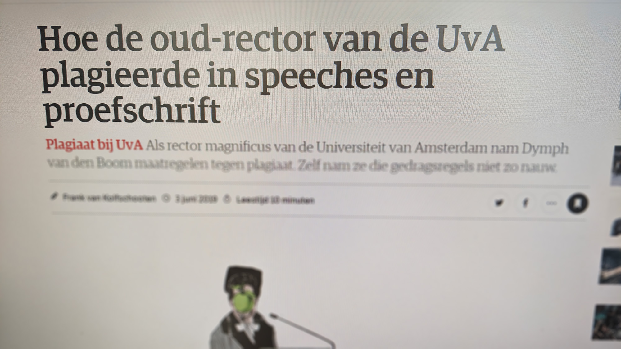 Een krappe week later opent nrc.nl met de kop: ‘Hoe de oud-rector van de UvA plagieerde in speeches en proefschrift’. Wetenschapsjournalist Frank van Kolfschooten schrijft over plagiaat in negen van haar diesredes, en in haar proefschrift uit 1988. Hoe hij bij dit onderwerp kwam, is onduidelijk. “Min of meer bij toeval ben ik eens gaan googelen op Dymph van den Boom en toen kwam ik terecht bij een uitgeschreven diesrede van haar die op internet te vinden was”, zegt Van Kolfschooten erover in een podcast van NRC.