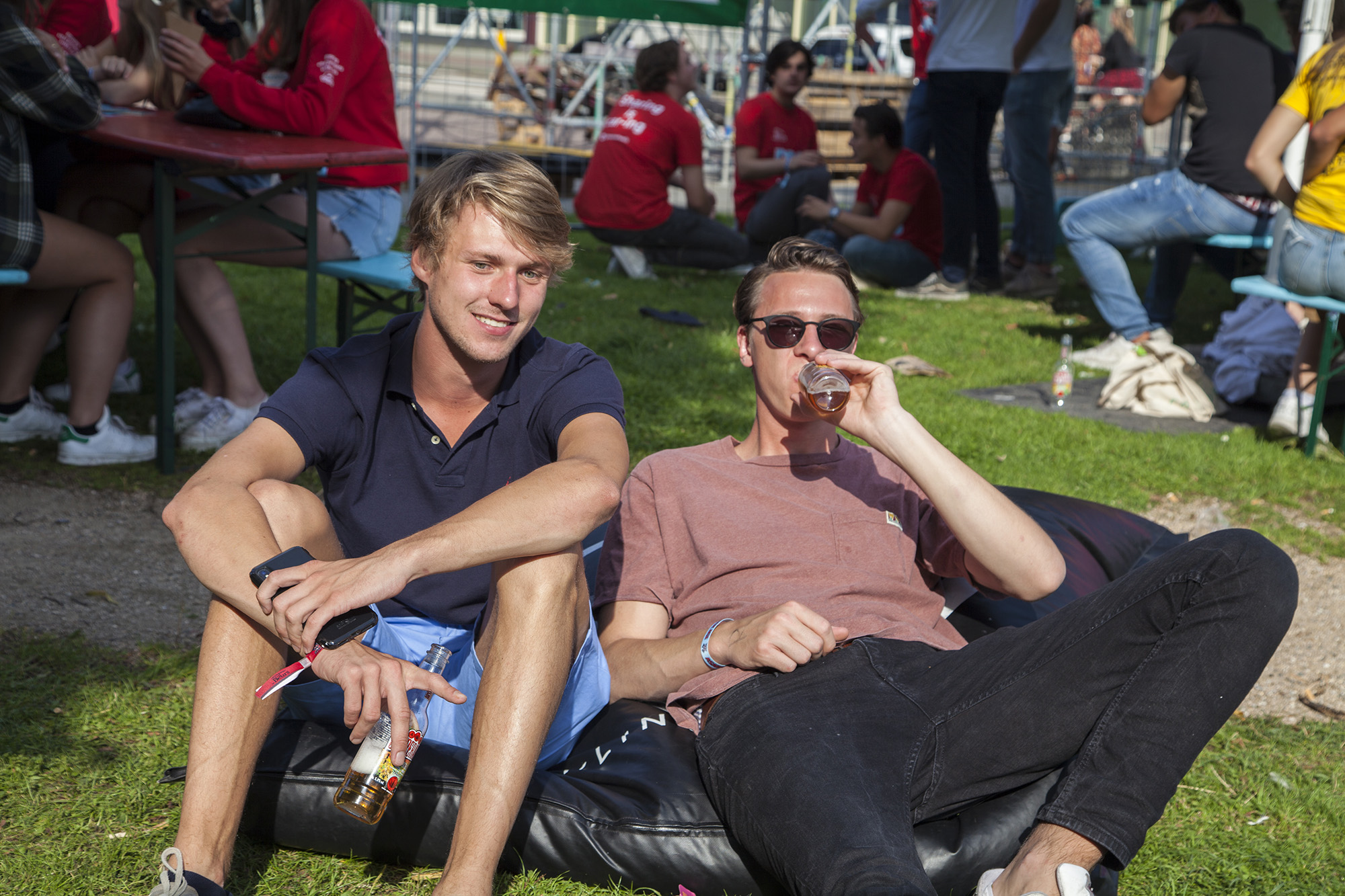 Vanaf een afstand is de sociëteit van RSC/RVSV bijna onherkenbaar. Door de grote stellage die als aanbouw dient, met een loopbrug naar een naastgelegen grasveld, lijkt het pand wel verdubbeld in formaat. De temperatuur stijgt, het volume van de muziek ook en in rap tempo vullen studenten het terras. Bij de ingang staat een rij en het is pas 16.00 uur, halverwege dag drie van de Eurekaweek.