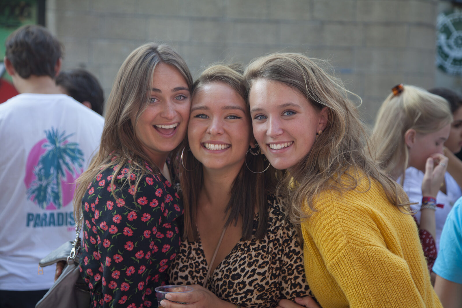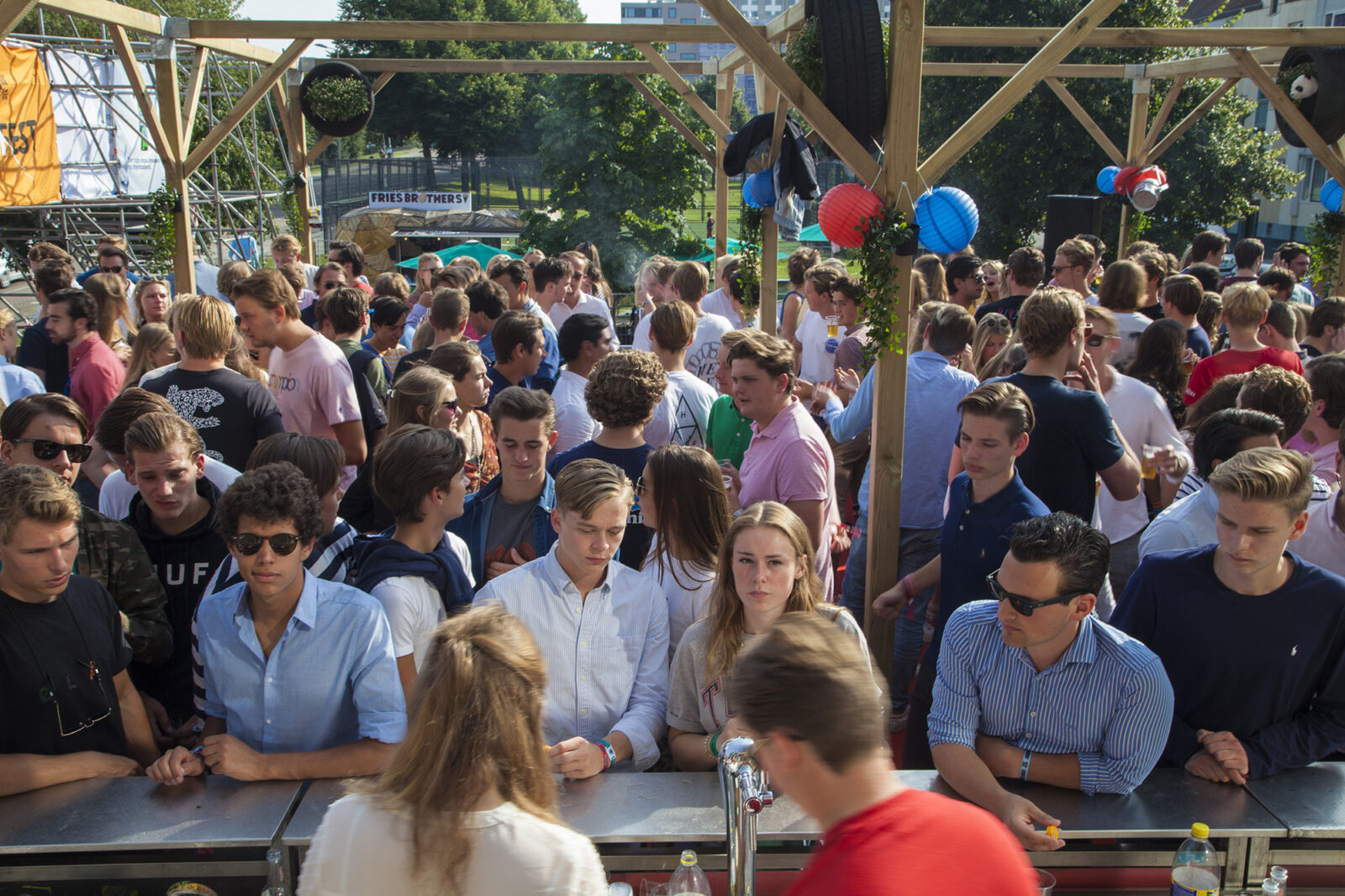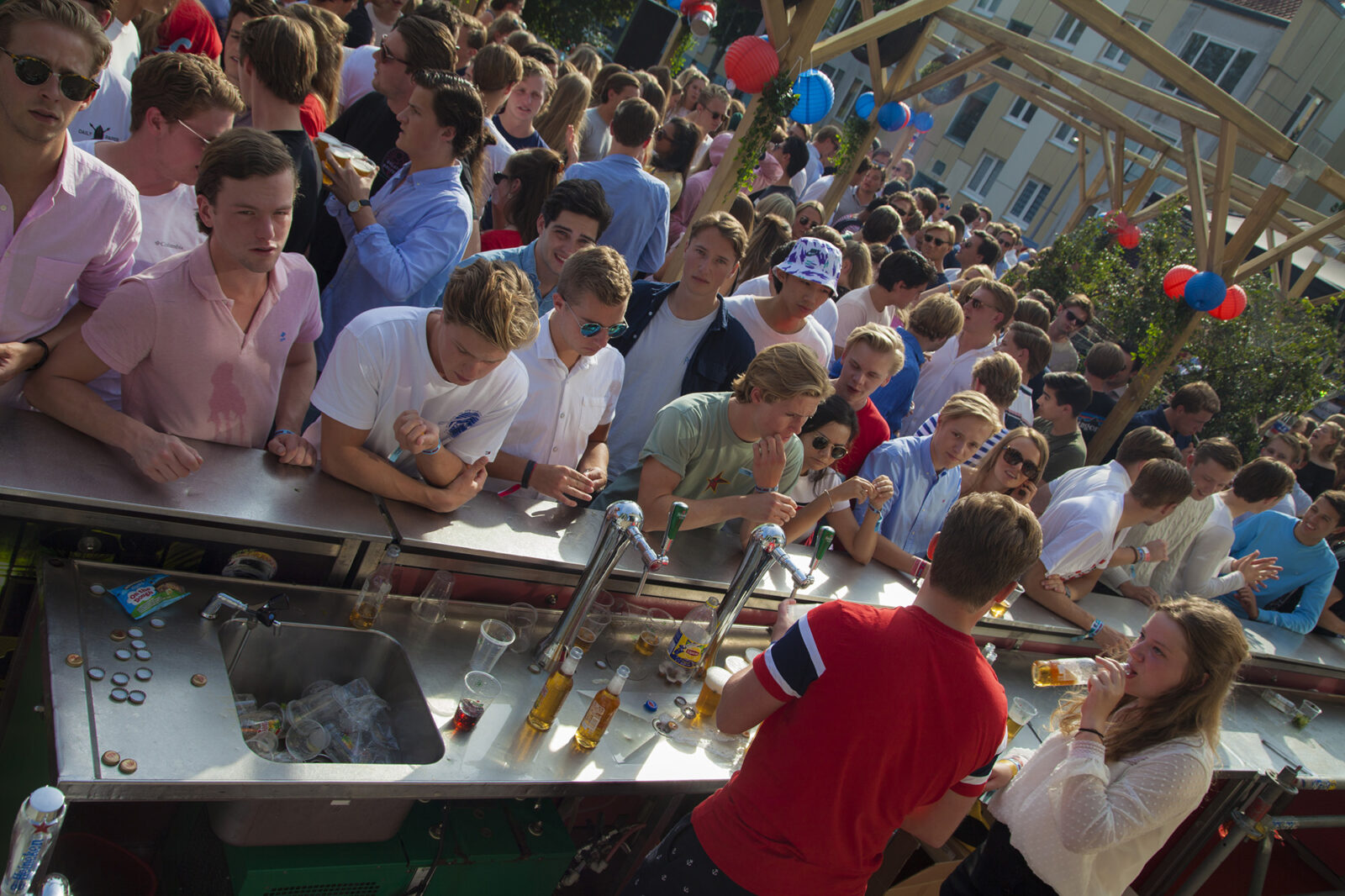 Vanaf een afstand is de sociëteit van RSC/RVSV bijna onherkenbaar. Door de grote stellage die als aanbouw dient, met een loopbrug naar een naastgelegen grasveld, lijkt het pand wel verdubbeld in formaat. De temperatuur stijgt, het volume van de muziek ook en in rap tempo vullen studenten het terras. Bij de ingang staat een rij en het is pas 16.00 uur, halverwege dag drie van de Eurekaweek.