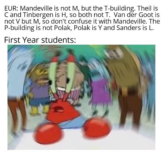 Wat is de logica achter de namen van de gebouwen op Campus Woudestein en de letters die de kamers in die gebouwen hebben? Is er überhaupt een logica? Het Tinbergengebouw is immers niet het T-gebouw, die letter hoort bij het Mandeville. Het M-gebouw is dan weer het Van der Gootgebouw. En het Hattagebouw is niet H, want het Tinbergengebouw is al H. Waar is dit mis gegaan?