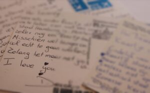 Voor hun werk moeten ze vaak naar het buitenland voor een conferentie, een onderzoeksproject of lesgeven. Derck bedacht dat hij, elke keer als hij op reis ging, een geheime boodschap op een ansichtkaart zou sturen naar Stephanie. “De eerste kaart heb ik vanuit Berkeley gestuurd”, vertelt hij. Op elke kaart die hij in de tijd daarna stuurde, stond één, of soms twee, letters gemarkeerd met hartjes. “De hartjes waren zo onopvallend”, zegt Stephanie. “Als je een lief kaartje krijgt dan is het alleen maar leuk. Je zoekt ook niets achter zulke kleine dingen.”