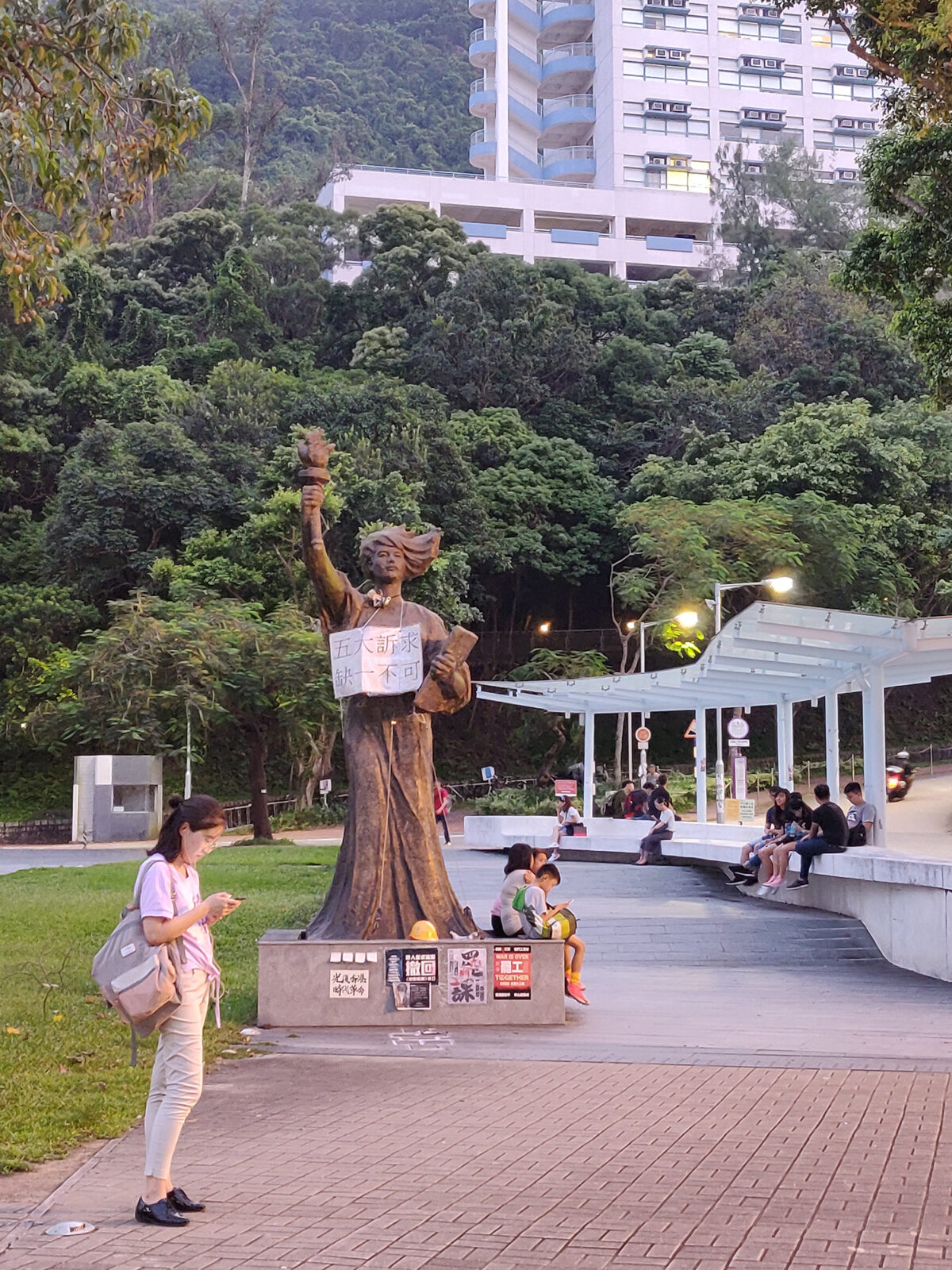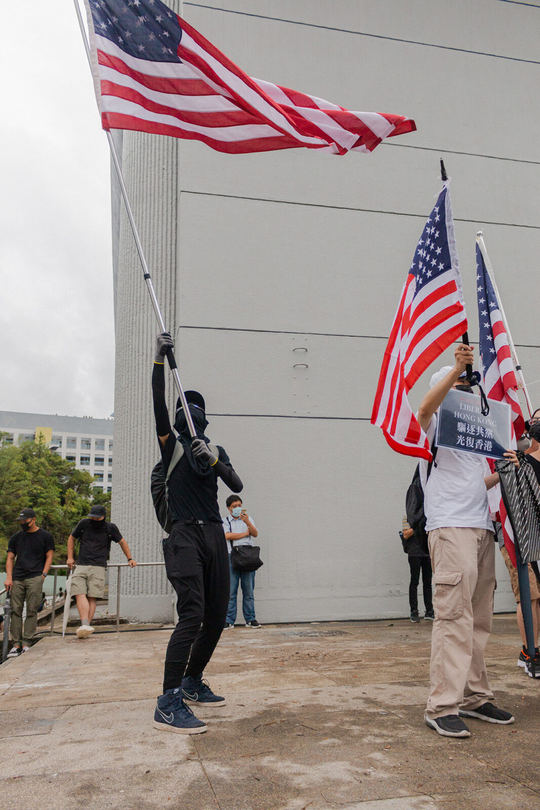 • “De inwoners van Hongkong willen dat Amerika hen steunt. Hier zien ze Trump als een van de weinigen die opstaat tegen China. Door de zwaaien met Amerikaanse vlaggen proberen ze aandacht van Amerika te trekken om een statement tegenover China te maken.”