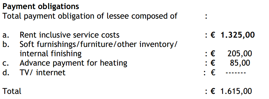 Huur inclusief servicekosten: 1325 euro