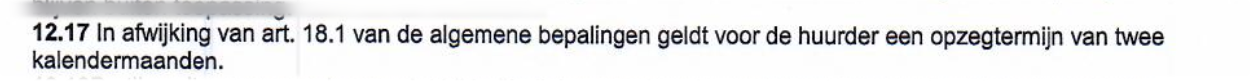 In afwijking van de algemene bepalingen geldt voor de huurder een opzegtermijn van twee maanden.