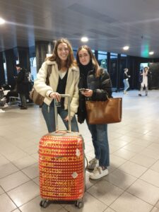 Met rolkoffers in de zaal