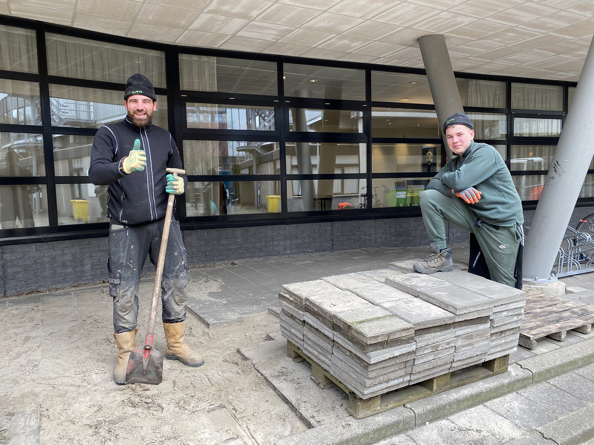 • Bouwvakkers klussen door