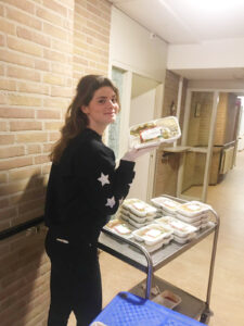 Mirthe Reimes is lid van RSC/RVSV en nam een project op zich waarbij ze diepvriesmaaltijden maakte en rondbracht aan voormalig daklozen en verslaafden in een van de panden van hulporganisatie Humanitas. De masterstudente Fiscale Economie vertelt dat haar bijdrage een noodoplossing is. “Eerder werden er maaltijden bereid door vrijwilligers, maar de gaarkeuken is tijdelijk dicht. Ook mogen de bewoners niet meer samen eten in de gemeenschappelijke ruimte. De oplossing is dat we van dinsdag tot en met vrijdag met twee mensen van de vereniging de maaltijden in de oven ontdooien en dan langs de kamers gaan. Zo krijgen de 35 bewoners toch nog hun warme eten.”