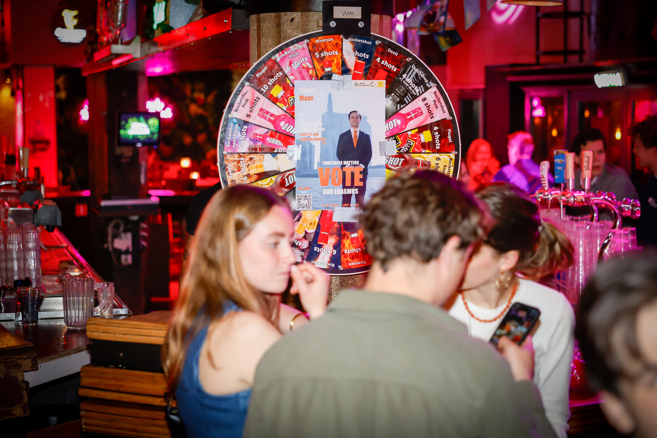 ‘Geen tentamens op zaterdag!’: Studenten stemmen en feesten bij café De Beurs