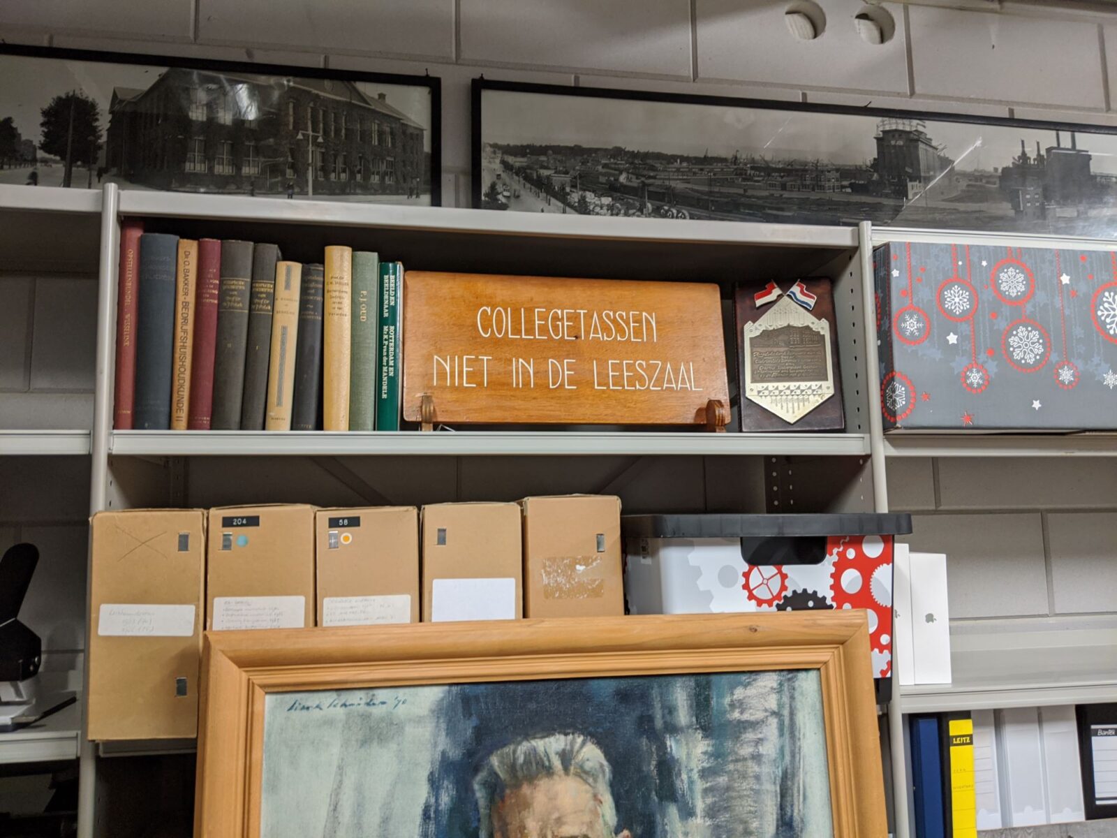 Niet alle objecten in het depot zijn haar even lief. Ze opent een kast vol met doosjes en cadeauverpakkingen. Een daarvan is een plexiglas buis met daarin een modeltreintje. In een doosje zit een kitsch ogend weegschaaltje. “Vertegenwoordigers van de universiteit gaan ieder jaar naar China en je wilt niet weten waar ze mee terug komen.” De archiefkast ernaast is op het eerste gezicht saaier: alleen maar boeken. Die vindt Boele veel interessanter. “Hier staan alle jaarverslagen vanaf 1913. Tot in de jaren tachtig staat heel gedetailleerd beschreven wat er gebeurde.”