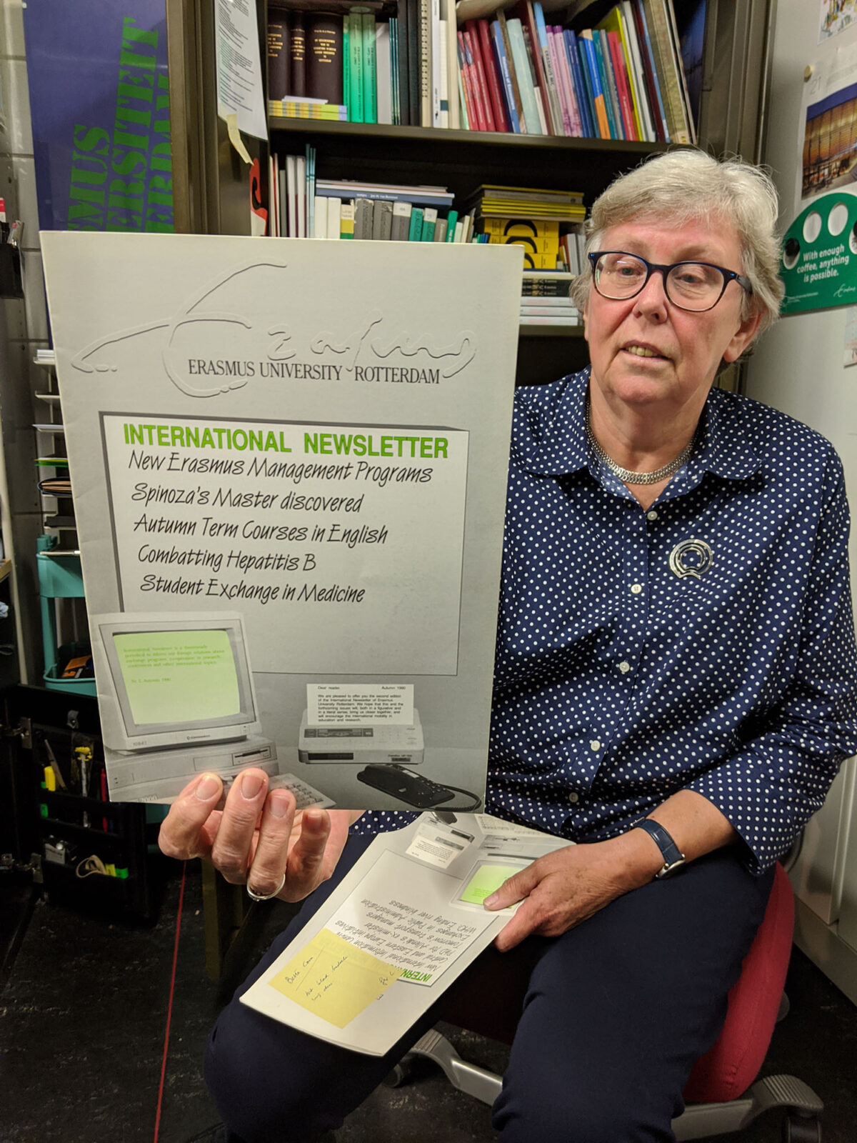 Je merkt er niets van, maar iedere keer dat je naar college loopt in het Theilgebouw, loop je over haar heen: in de kelder recht onder de hal bevindt zich het kantoor van Cora Boele, projectleider van het academisch erfgoed van de universiteit. Omgeven door artefacten uit de geschiedenis van de Erasmus Universiteit doet ze haar werk. Tot donderdag 14 mei, want dan gaat Boele met pensioen.