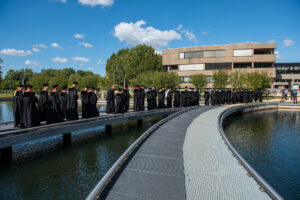 De Opening Academisch Jaar is een jaarlijks hoogtepunt op de campus, met een uitpuilende Aula, het cortège van hoogleraren die in toga over de vijver schrijden, en het Io Vivat dat uit volle borst wordt meegezongen. Maar in tijden van corona is dat onmogelijk.