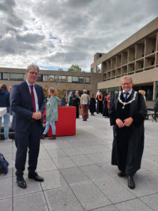 In een persoonlijke noot stond Engels ook stil bij het ‘durven falen’, volgens hem een belangrijke voorwaarde voor het welzijn van studenten. “Falen houden we liever uit het zicht. Als middelbare scholier ben ik ooit teruggezet van 3 vwo naar 4 havo. Een moeilijke periode, die voelde als falen. Terugkijkend is het een belangrijke ervaring voor me geweest. Het leerde me om me niet te vergelijken met anderen, maar mijn eigen pad te maken. Falen confronteert en relativeert, het geeft nieuwe inzichten. Bieden we onze studenten meer ruimte om te falen, leggen we een goede bodem voor hun verdere ontwikkeling en voor onze wetenschappelijke en maatschappelijke toekomst.”